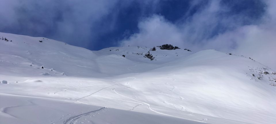 Gute Verhältnisse auf der Route angetroffen, es gab ca. 15 cm Pulverschnee vom letzten Schneefall, leider dichter Nebel bei der Abfahrt.