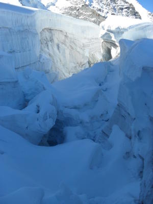 Bevor die Sonne die Hänge erwärmt ist der Firn hart. Hat die Sonne die Hänge erreicht wird der Schnee sofort weich und mühsamer zu gehn.