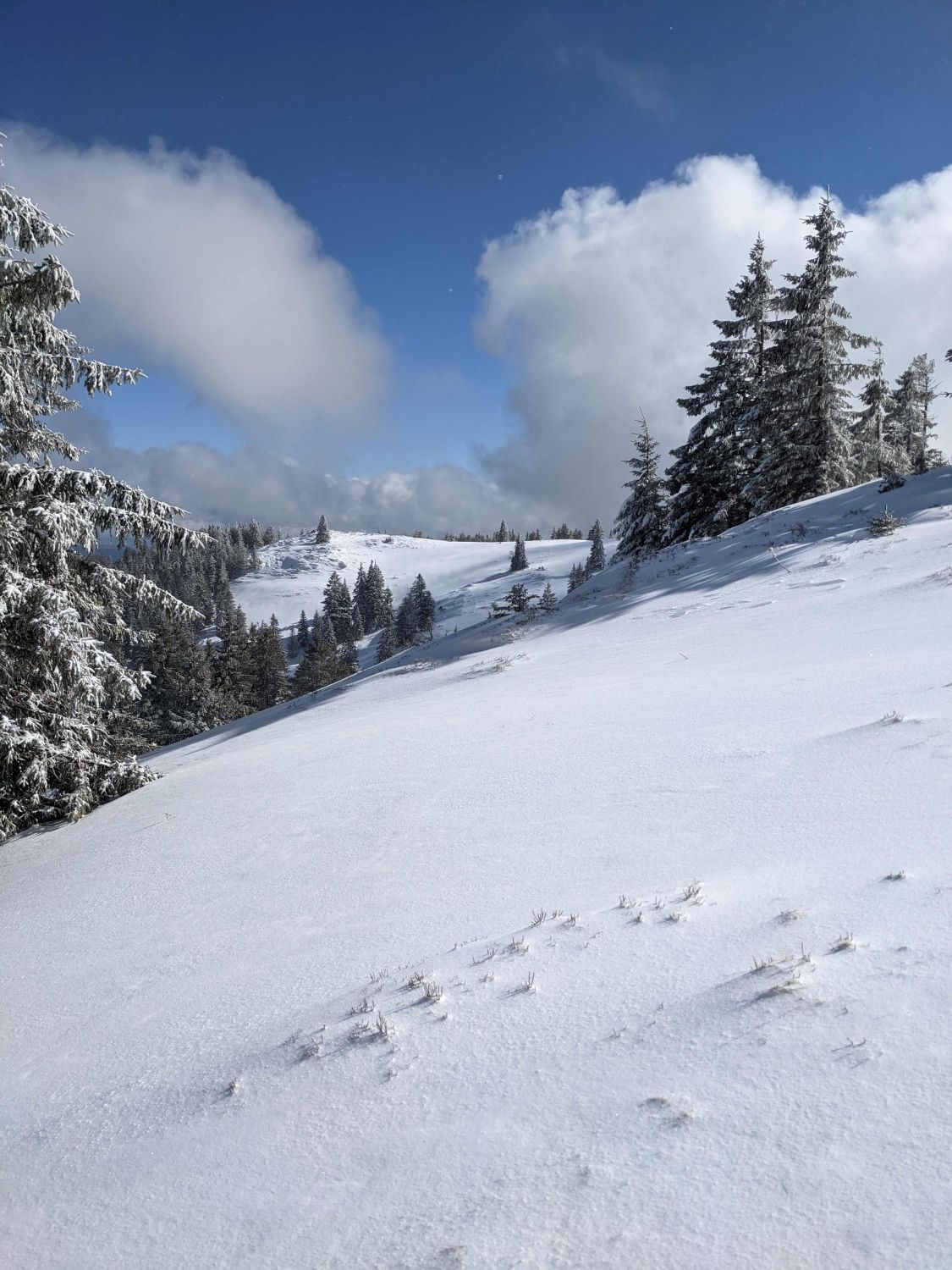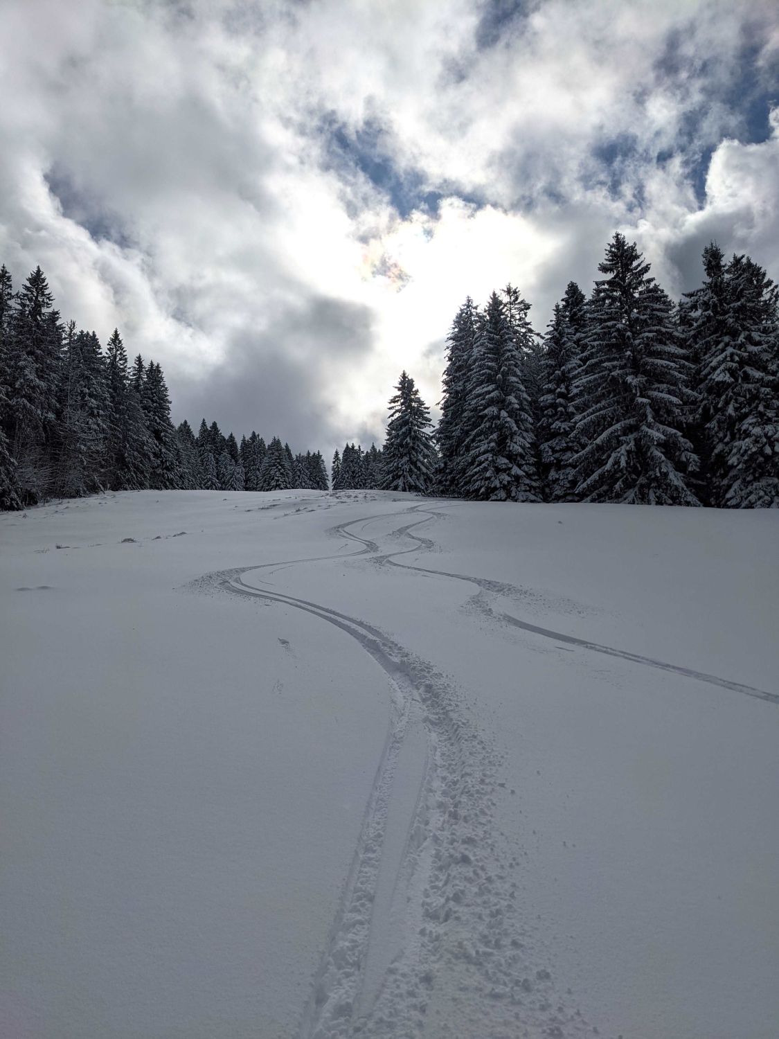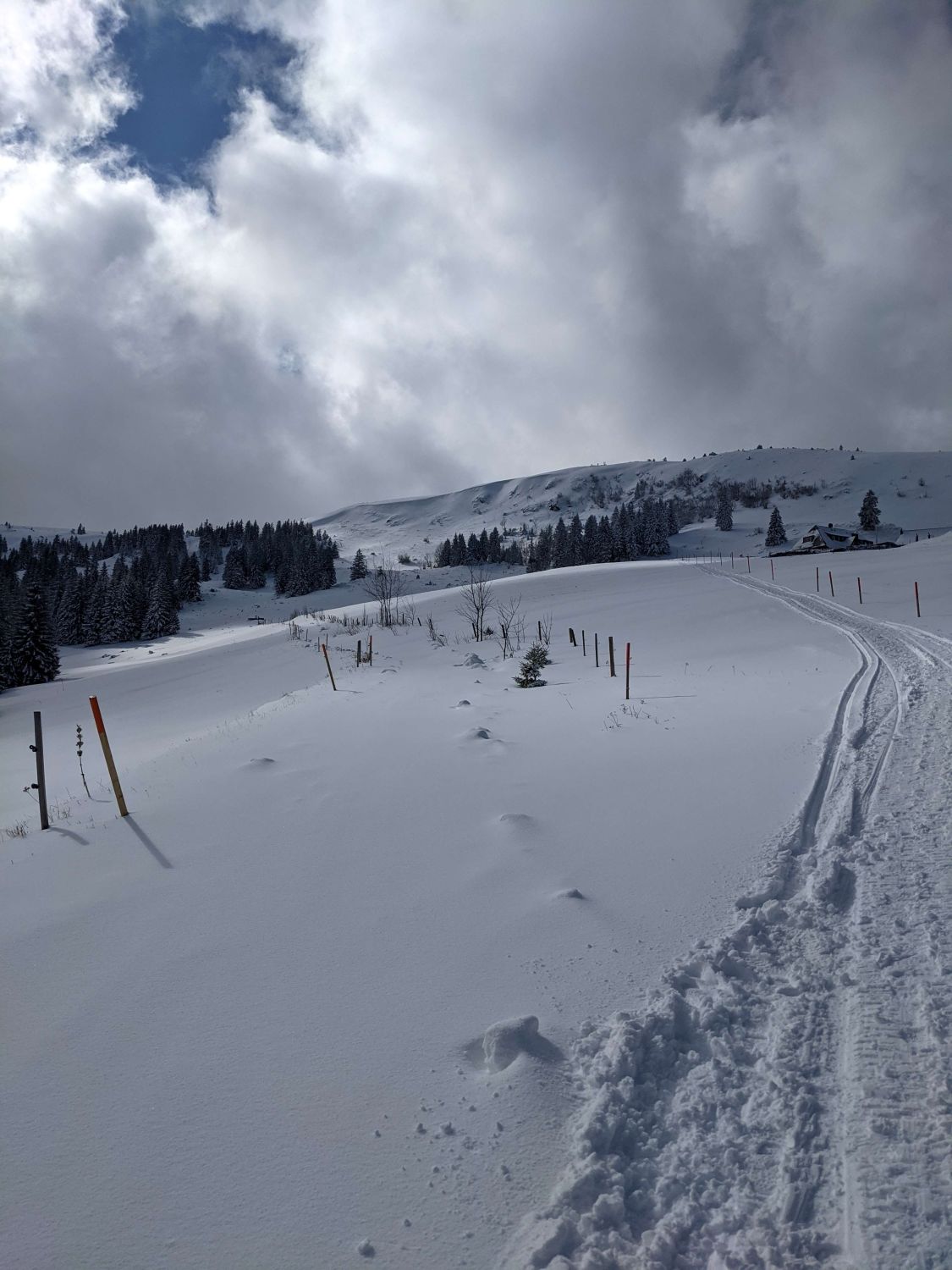 Aufstieg vom Rinken zum Feldberg ca. 10cm Pulver, teilweise aber ohne Unterlage. Im Gipfelbereich abgeblasen und stürmischer Wind. Abfahrt zum Hüttenwasen oben dünn, unten super, ca. 15cm schöner Pulver. Wiederaufstieg und Abfahrt zum Rinken. Mit Vorsicht ohne Feindkontakt möglich. Ab Baldenweger Hütte wieder gut.