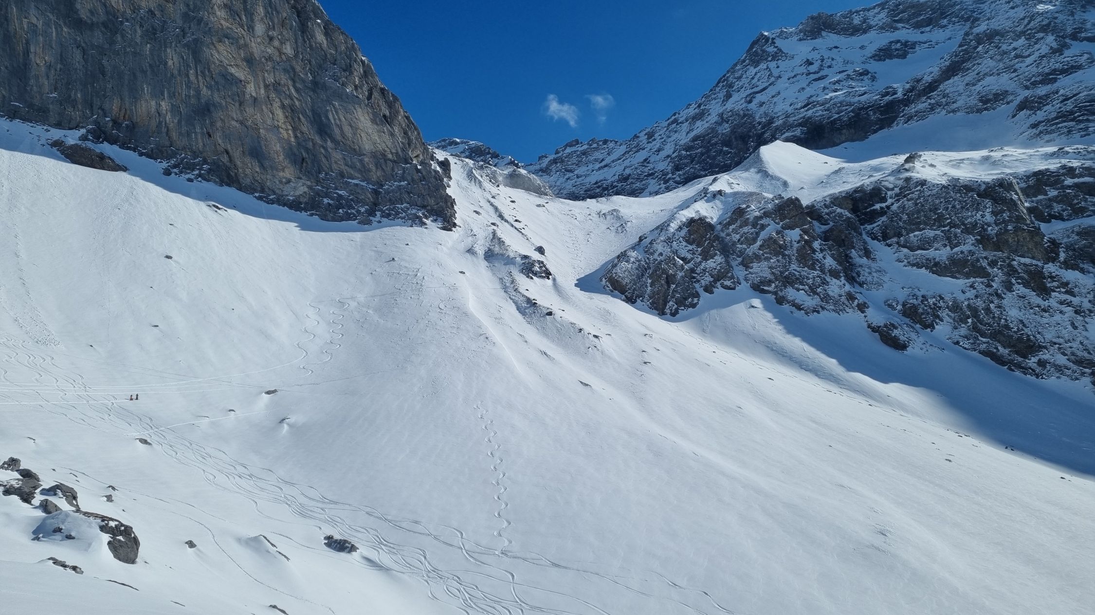 -1°C beim Start. Schnee reicht dank Ratrack-Spur durchs Brunnital. Felsriegel zw. Lammbachalpen ist hart. Danach ca 10cm Neuscheeauflage auf hartem Windschnee. Beim Aufstieg in Griesseggen wechselte Pulver- mit hartem Windschnee. Aber es hat versteckte Steine! In der Zeit zwischen Aufstieg und Abfahrt baute der doch recht kräftige Wind viele Sastrugi. Die ausgeprägte Moräne bei P. 2479 ist abgeblasen -> Ski tragen. In der Passage unmittelbar darunter hat es viele versteckte Steine. Die Ski sehen entsprechend aus. Gipfelhang ist steil, geht aber einigermassen zum Steigen (Harscheisen ev. hilfreich). Kräftiger Südwind auf dem Gipfel. In der Abfahrt finden sich immer wieder schöne, pulvrige Hänge.