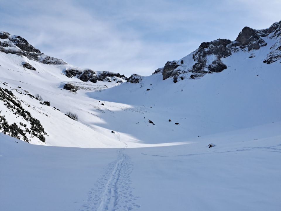 Ich bin vom Naafkopf auf Österricher seite über unberührte hänge abgefahren und wieder zur Pfälzerhütte aufgestiegen.