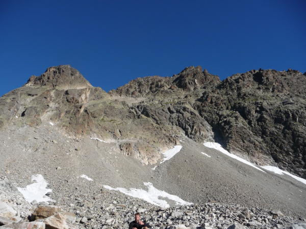 Der Zustieg ist schneefrei und trocken. In der Flanke viel loses Zeug, Steinschlaggefahr.