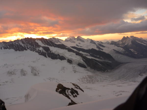 Der Neuschnee hat sich gut gesetzt. Kein Blankeis. Der Schnee auf dem Jungfraufirn war begehbar, aber so weich, dass er mit Schneeschuhen wohl besser begehbar gewesen wäre (Start in der Mönchsjochhütte um 03:45, Retour auf dem Jungfrujoch um 10:00 Uhr). Aufstieg um den Felssporn bei Punkt 3506. Abstieg direkt wo man sich unten ca. 5m über einen Gletscherabbruch abseilen muss. Ein junger Bergführer hat ein Scheit mit Bandschlaufe installiert. Zudem gibt es auch eine Birne. Der Bergschrund beim Rottalsattel war ziemlich weit offen, kann aber noch überstiegen werden.