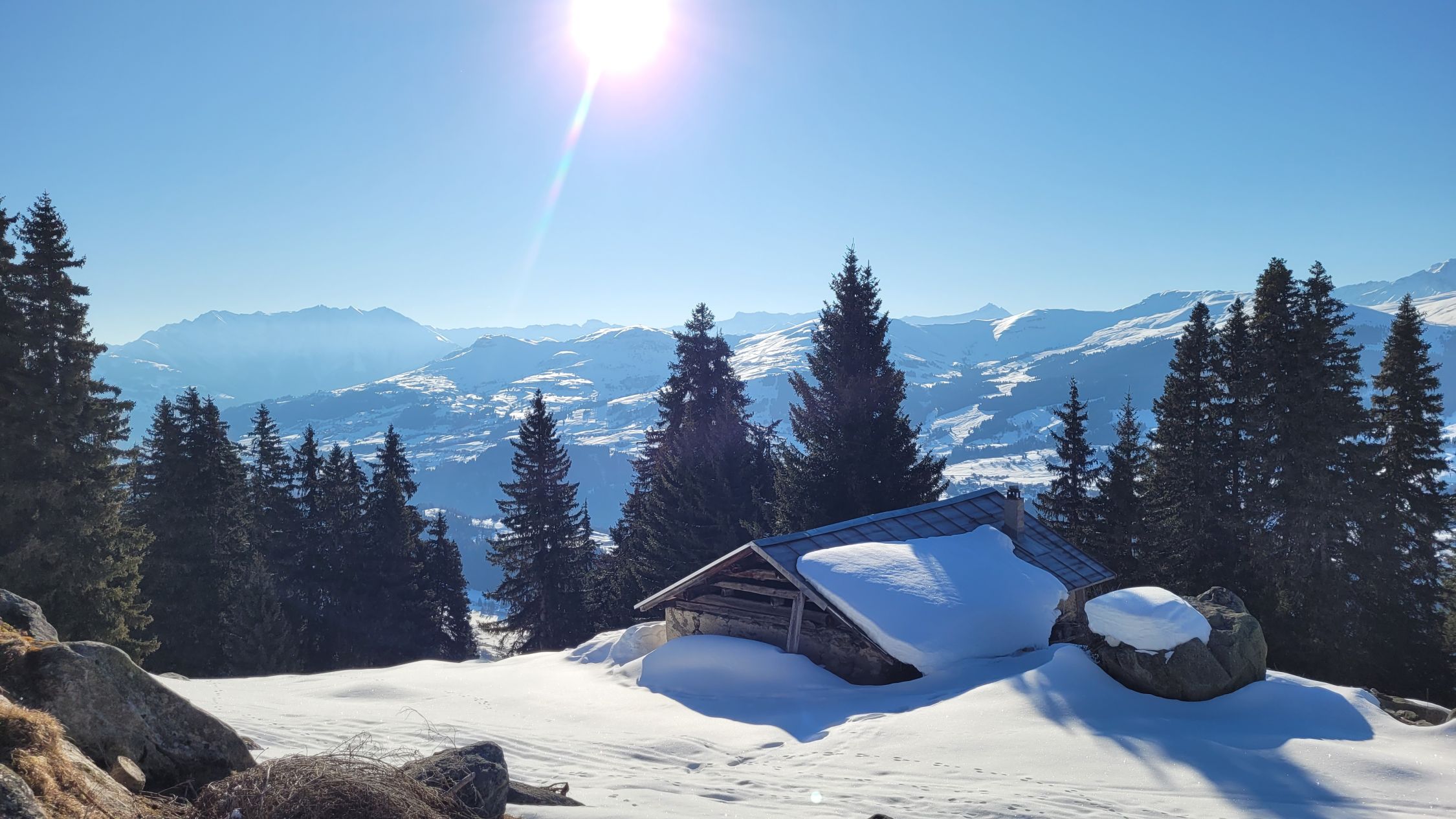 Unter 2200m super Sulz, Genussabfahrt via Tschegn Dadens zurück nach Brigels. Nur 3x 50m Ski tragen.