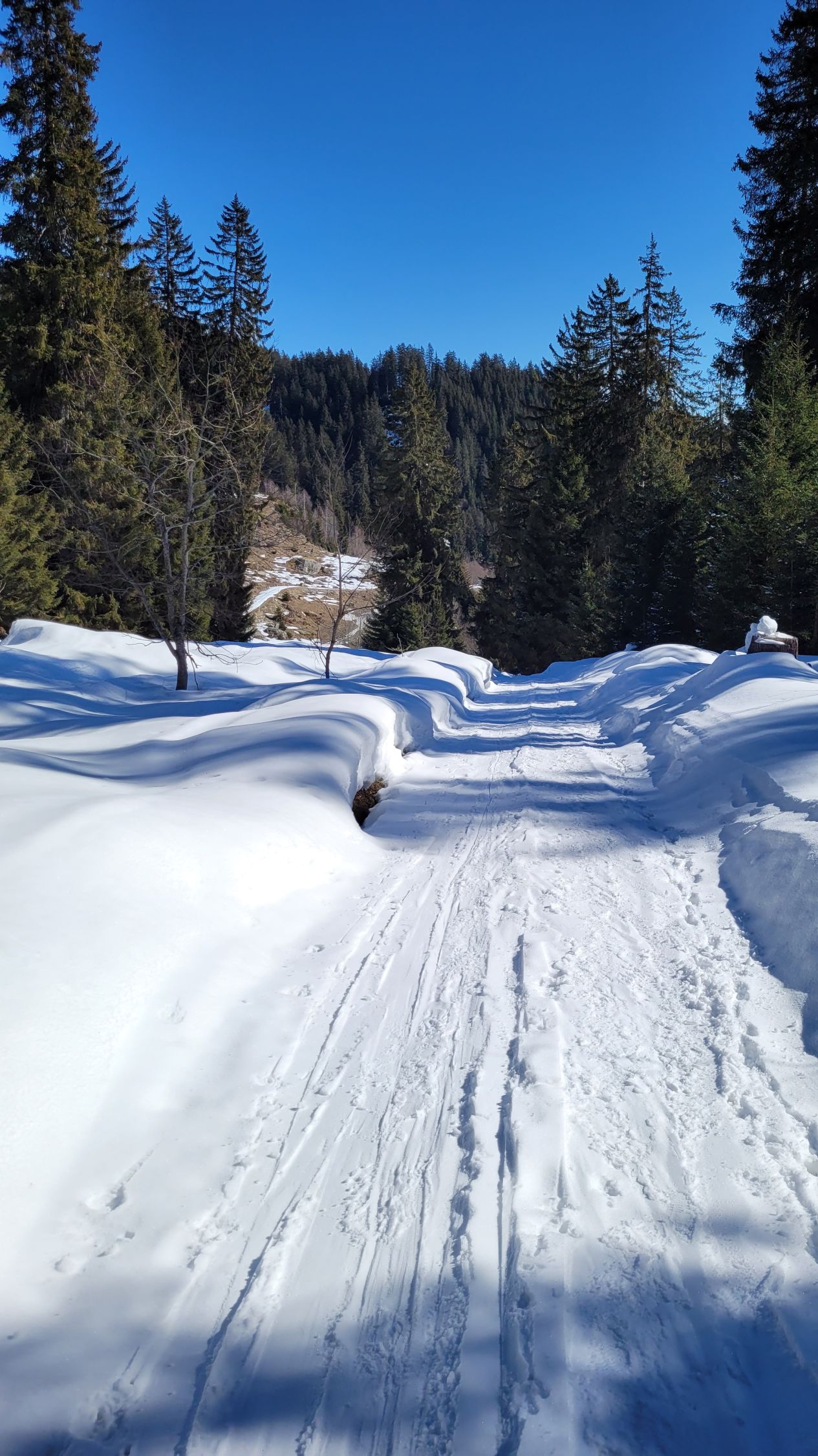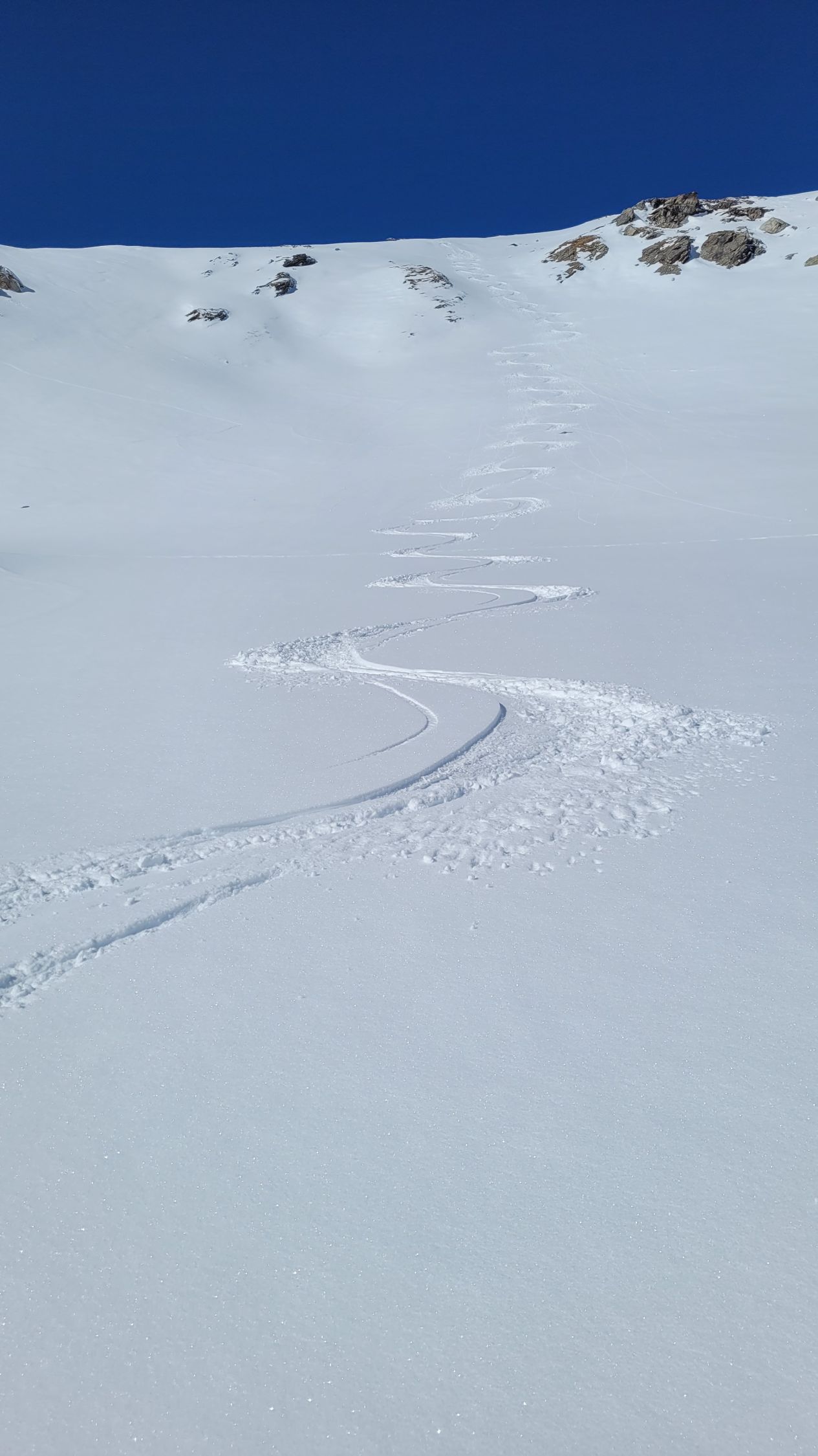 Abfahrt Val Dado weil besser geschützt von Wind und Sonne, oben 15, unten ca. 5 cm frisch auf hart.