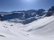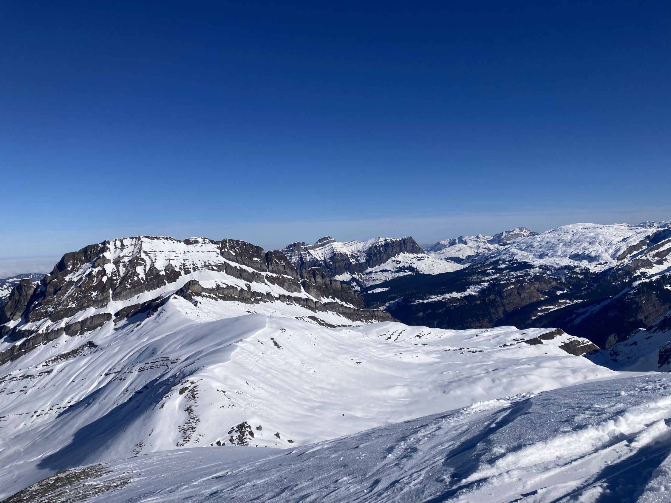 Ab Fadbödeli zumindest in Ost, Nord und Schattenhängen guter Pulverschnee fast gleichbleibend bis zum Gipfel etwa 10cm auf harter Unterlage.