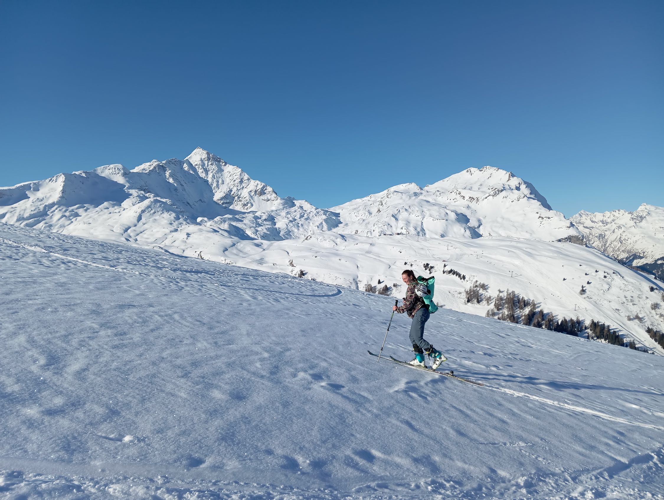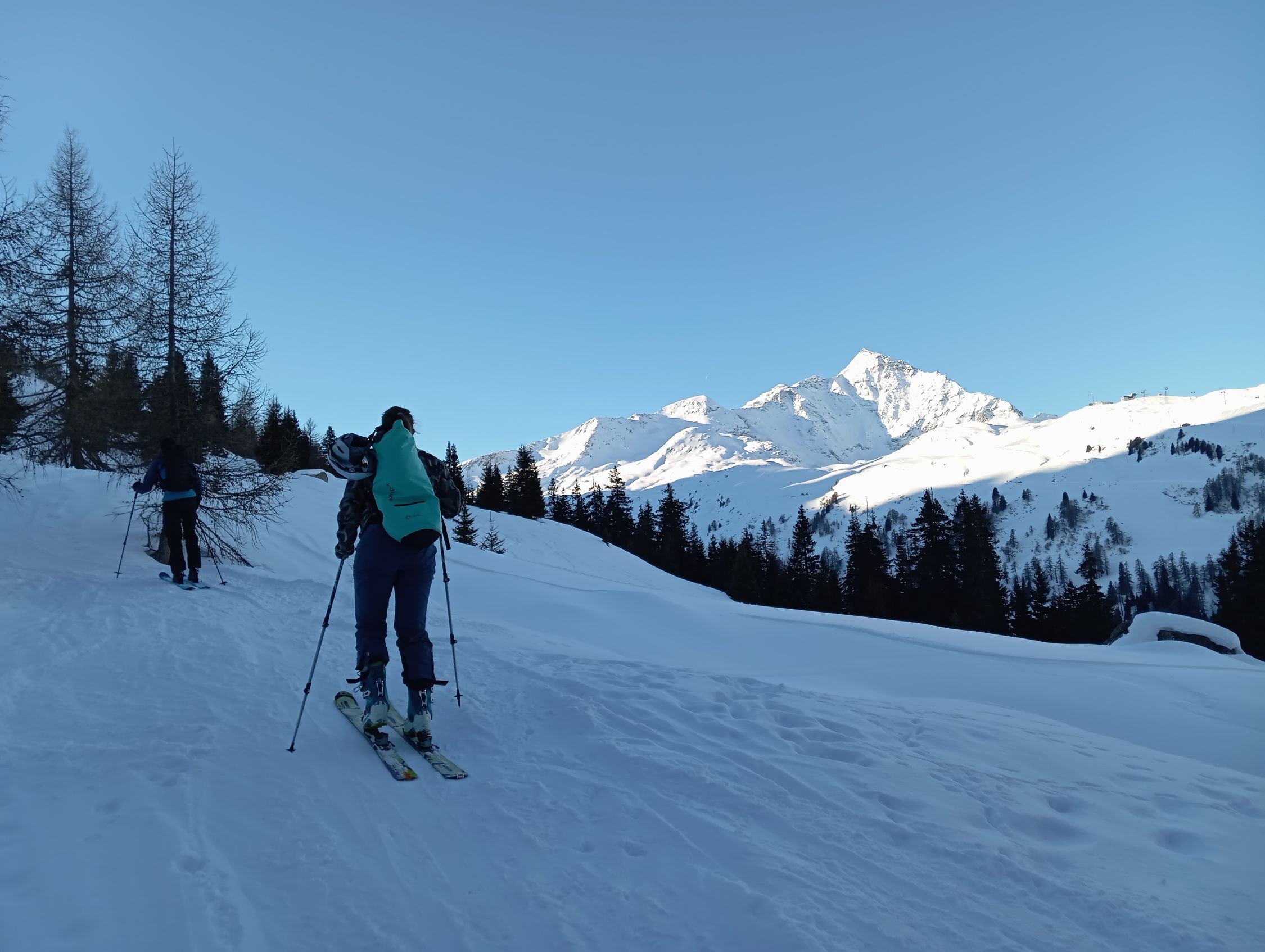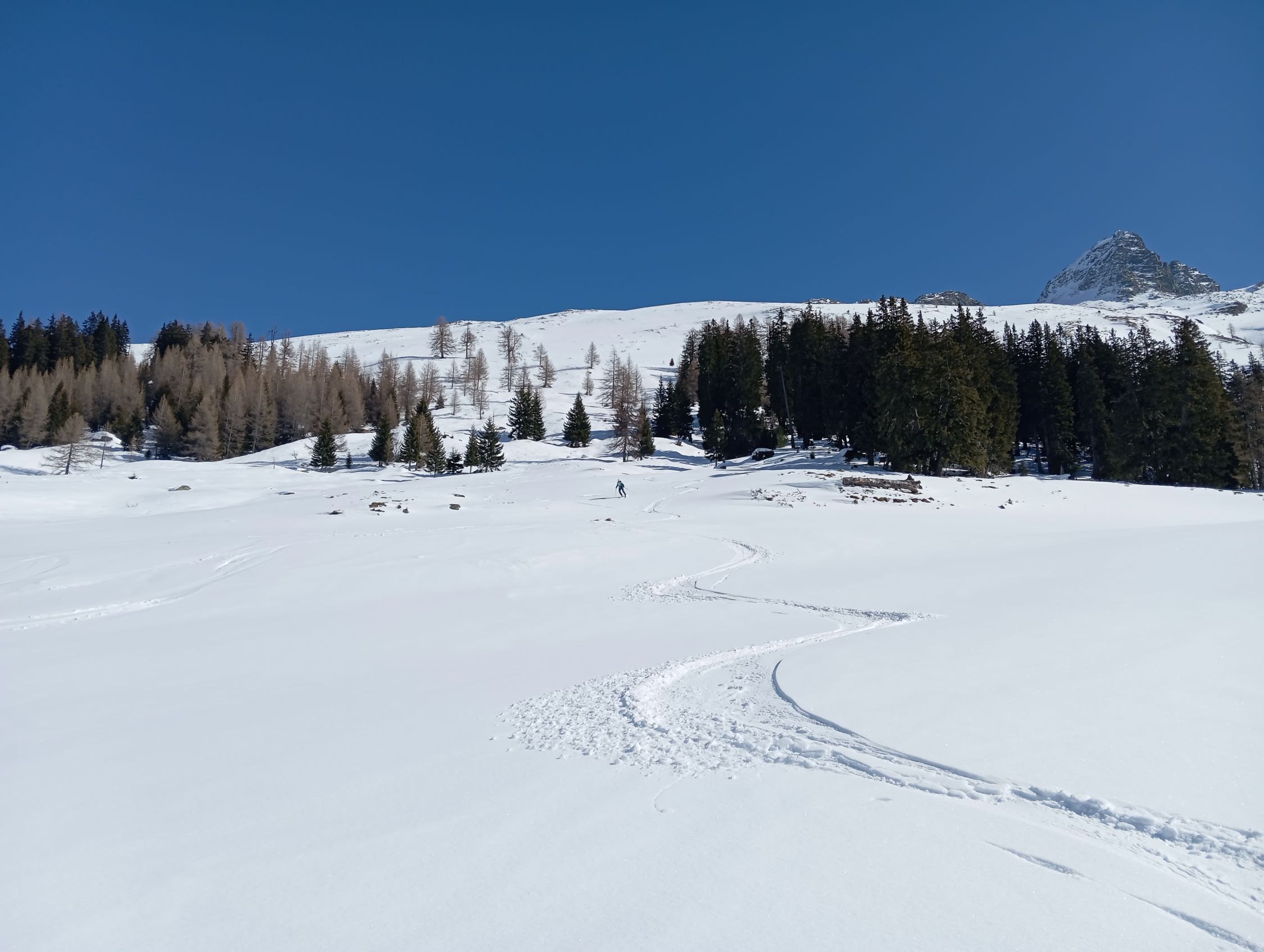 Leichte Pulverschneeauflage auf Altschnee, Vorsicht vor verdeckten Steinen