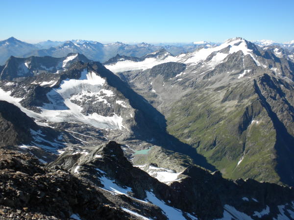 Prächtiges, sicheres Wetter, Felsen überall trocken, nur das untere Eisfeld braucht Eisausrüstung.