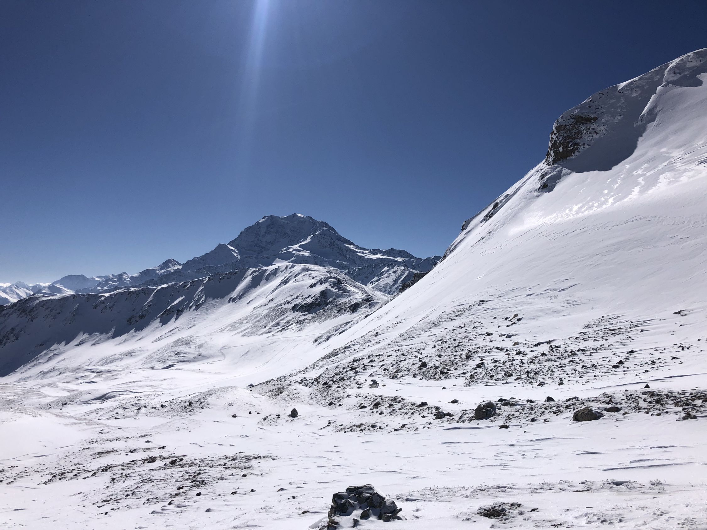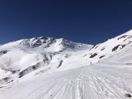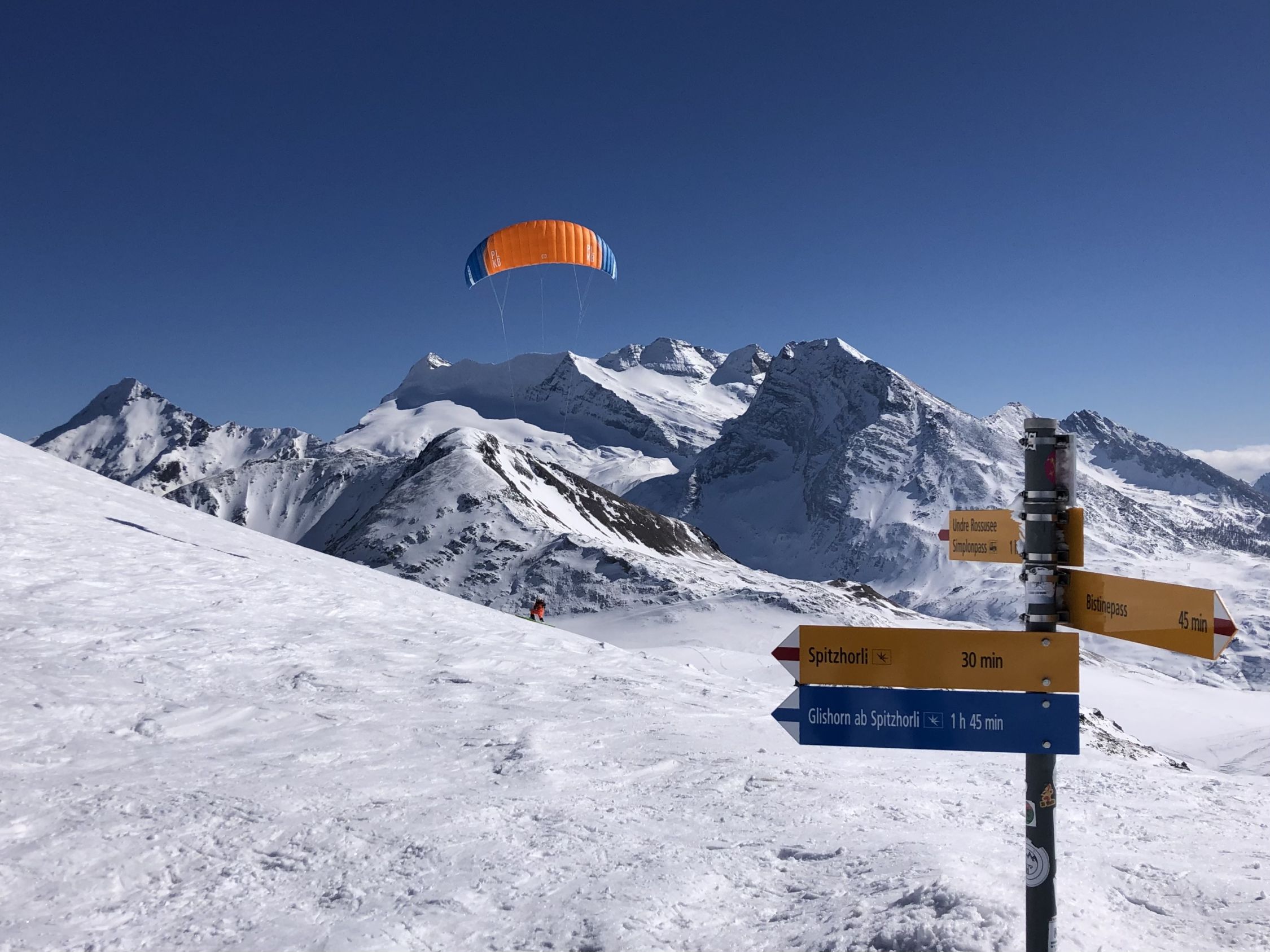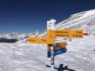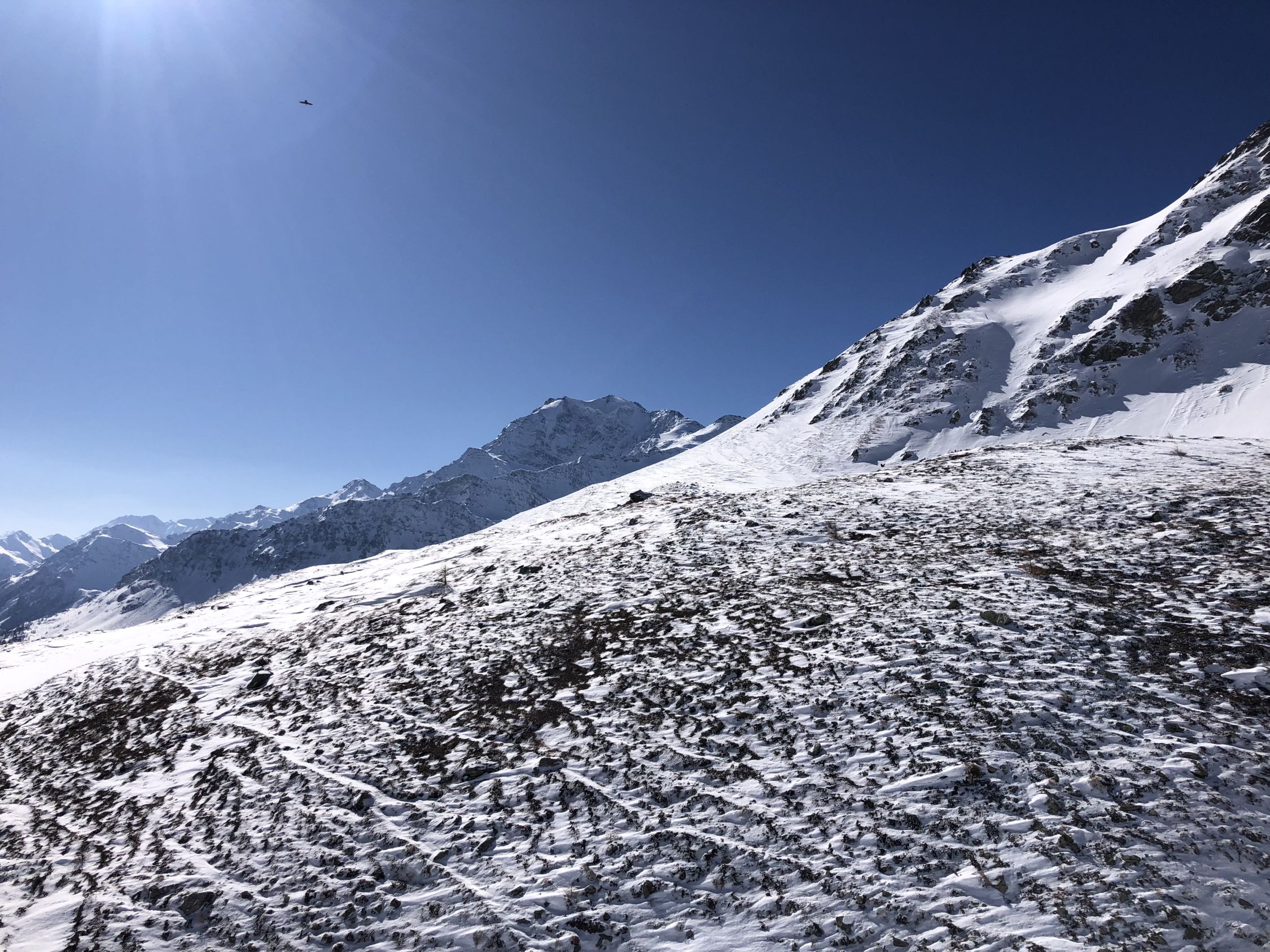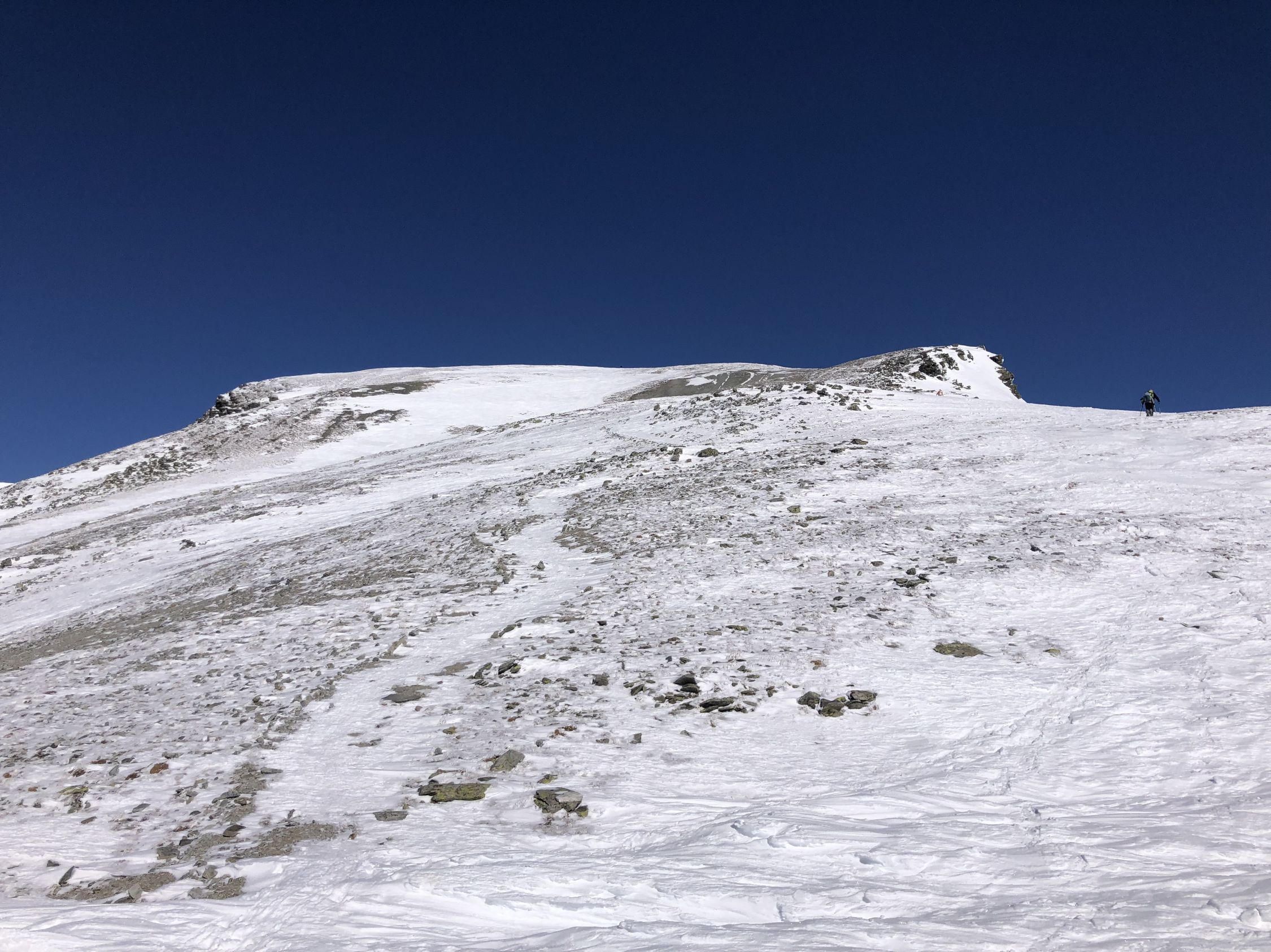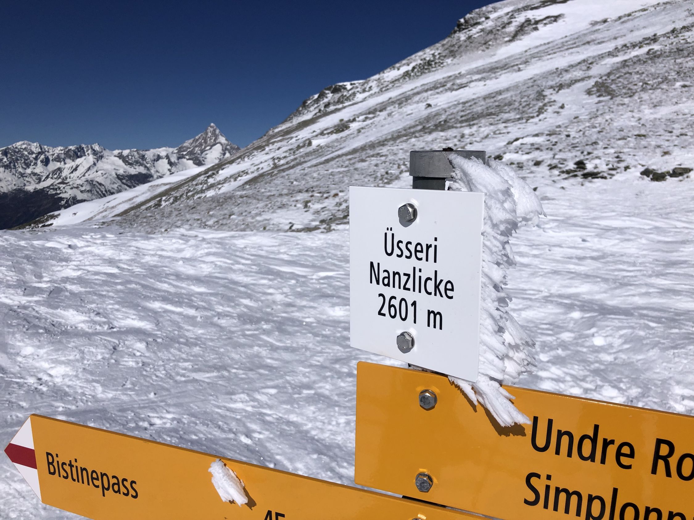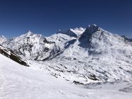 Der neue Schnee (5 cm) von gestern war sehr angenehm, sonst hart und verblasen. Die langen Hangquerungen waren am Morgen hart, aber ok ohne Harscheisen. Im ganzen Gebiet viele abgeblasene Stellen, Rücken zum Spitzhorli-Gipfel sehr viele Steine, darum Umkehr auf der üsseren Nanzlicke 2601 m. Wunderbare Aussicht zum Bietschhorn, Weisshorn und Dom, Nadelhorn & Co., Monte Leone.