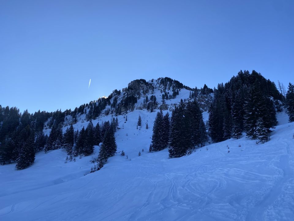 Start 08:30 in Oberiberg-grad noch genug Schnee. Oben ca 10 cm Pulver auf harter Unterlage. Grat zu Fuss gemacht
