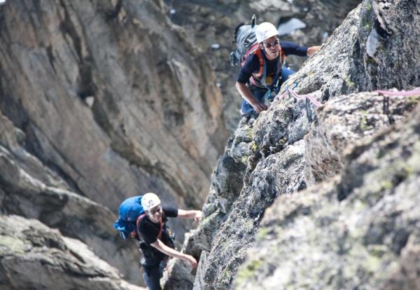 Sehr gut eingerichteter Klettersteig in die obere Bielenlücke. Dennoch haben wir für den Zustieg von der Sidelenhütte zum Grateinstieg 3 Stunden gebraucht. Für den Grat selbst sind laut Führer 3 Stunden vorgesehen. Diese Zeitvorgabe haben wir deutlich überschritten. Der Grat selbst inkl. der Schlüsselstelle ist sehr gut abgesichert. Ein, zwei Friends sind nett, aber nicht obligatorisch, wenn man genügend Zackenschlingen dabei hat. Wir sind den größten Teil in Kletterschuhen geklettert.