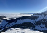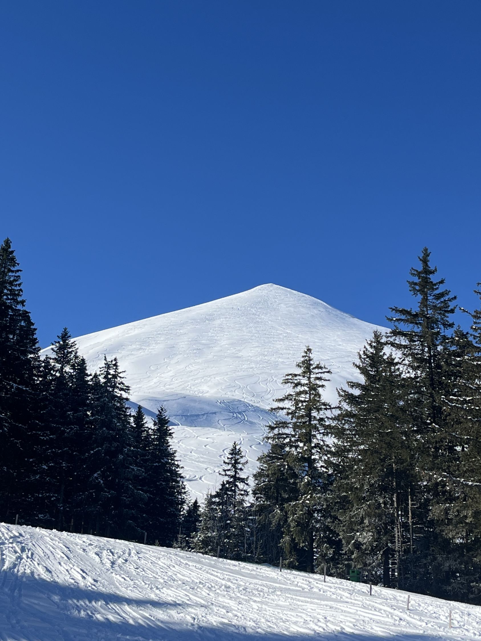 Start um 8.00 Uhr bei eisigen Temperaturen, wolkenlosem Himmel und etwas Wind. Auch SchneeschuhläuferInnen und Hunde nutzen die Aufstiegsspur. Dementsprechend ist der Zustand nicht so toll. Gegen den Gipfel zu nimmt die Schneehöhe etwas ab und es zeigen sich schon apere Stellen. In der Abfahrt Richtung Nord Nord-Ost hatte es noch unverspurten Pulverschnee.