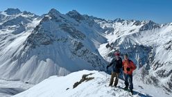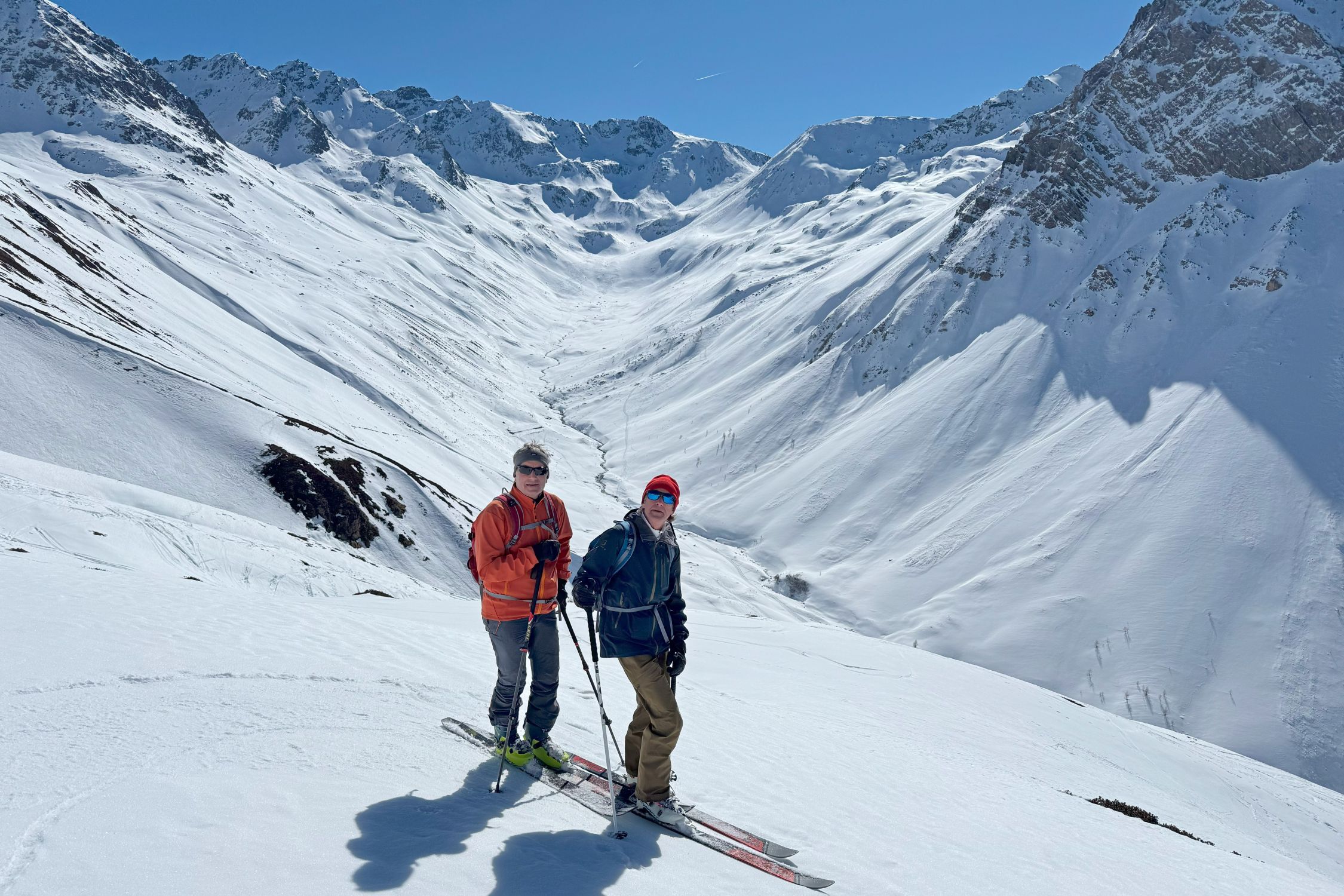 Das Gfrorenhorn ist eine populäre Tour von Sertig aus. Die Aussicht auf die Ducan Kette und Piz Kesch ist beeindruckend. Und in der Abfahrt gibt es Varianten und v.a. im oberen Teil findet man auch jetzt noch etwas Pulver.