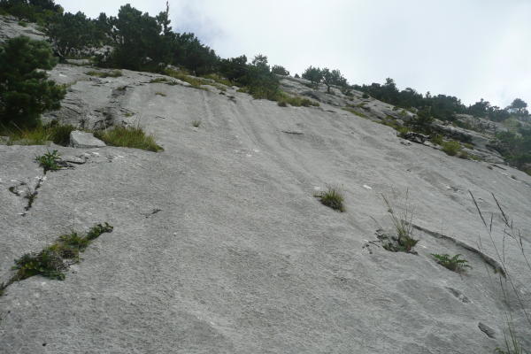 Wir kletterten die Routen NeuRose (5 Sl, 6b) und Männertrü (3 Sl., 4c). Beide waren weitestgehend trocken und schön zu klettern. Bei NeuRose würden wir die Schwierigkeiten der letzten beiden Seillängen anders angeben als im Topo, die 4. Seillänge 6a+ und die 5. 6a-.