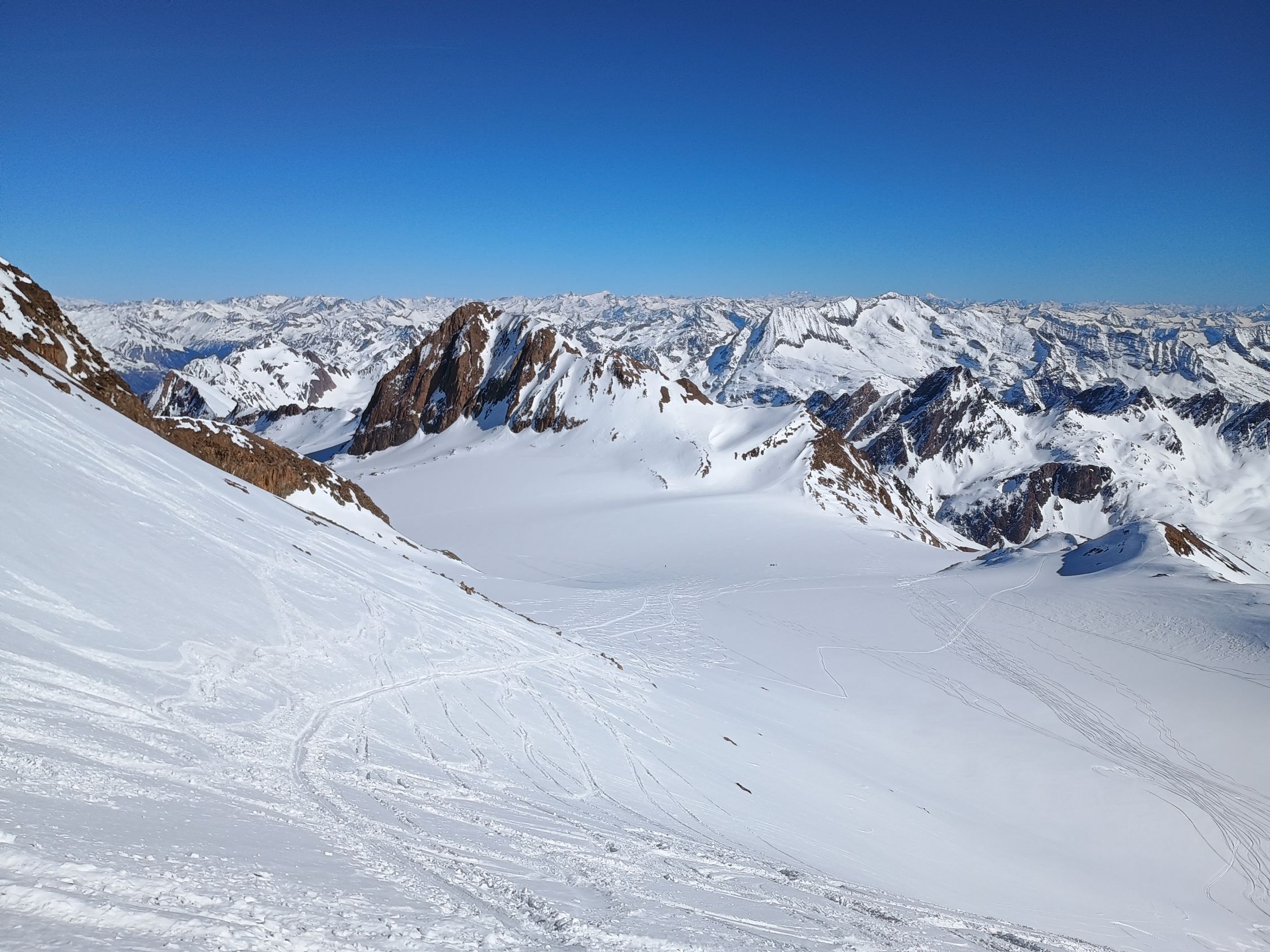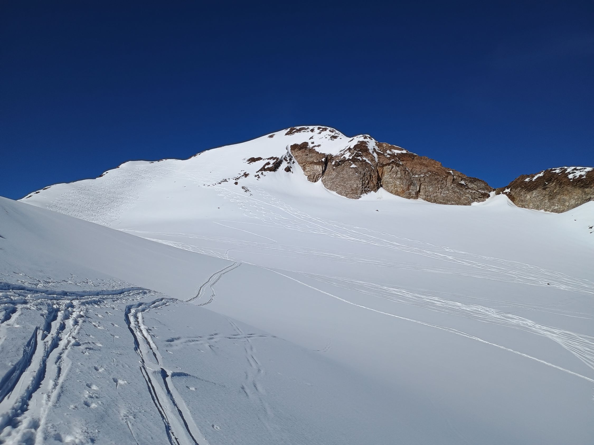 Sind in der Margaroli Hütte gestartet, von da via Passo di Vannino hinunter zum Lago di Sabbione und via Claudio e Bruno Hütte hinauf. Hier sehr frühlingshafte Verhältnisse, teils schon apere Stellen. Ab dem Griesgletscher dann wunderbare Verhältnisse, insbesondere die Abfahrt auf dem Griesgletscher bis unter dem Bättelmatthorn Traum Pulver! Danach gute Spur bis kurz vor den Griessee, da dann steil hinauf an P. 2479 vorbei. Gute Spur, aber Achtung vor Löchern. Besser nicht über den Griessee!...