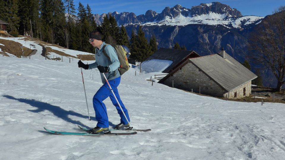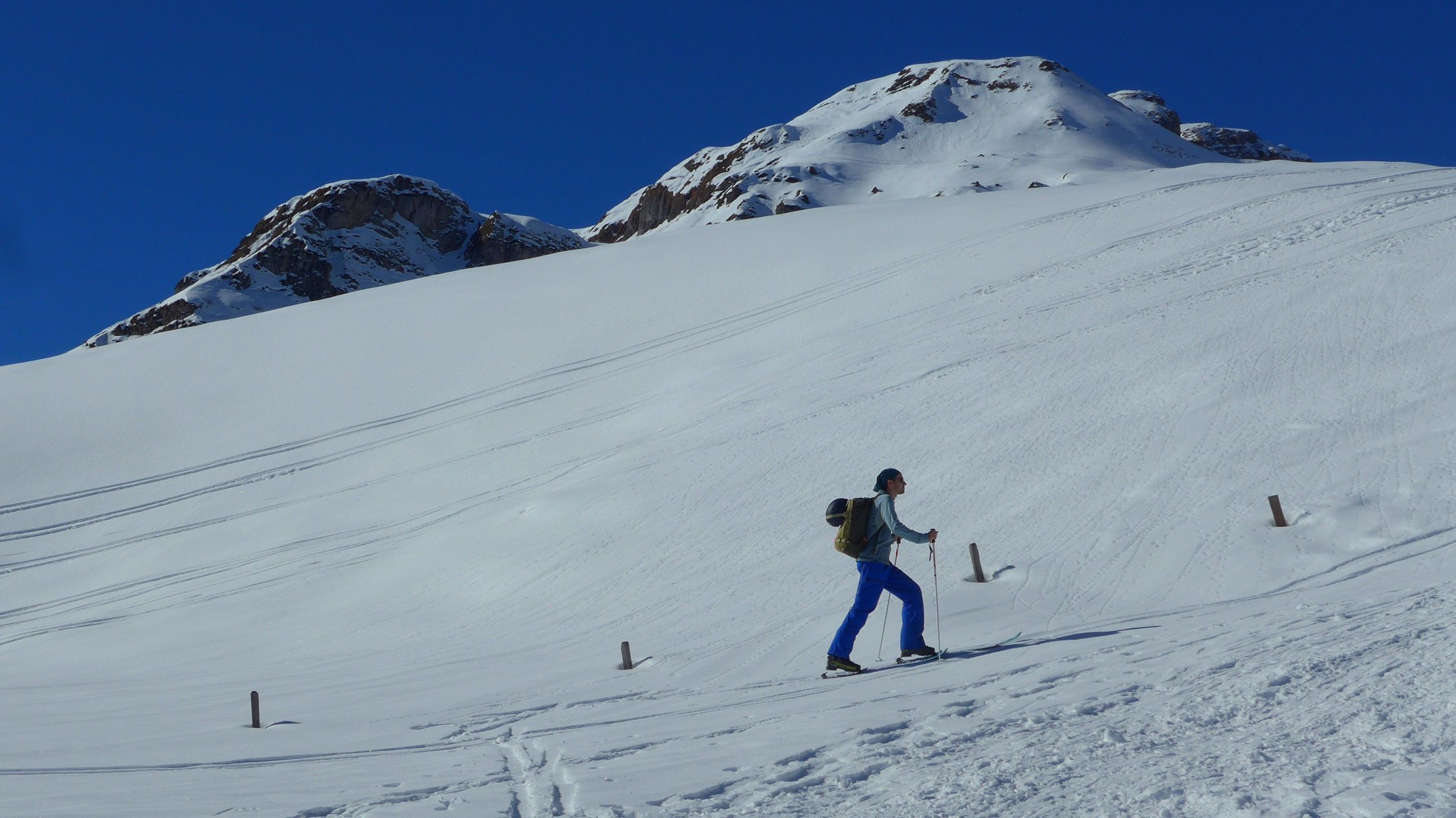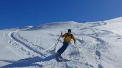 Wir drehen nach links, in die herrlichen Nordhänge der Pfufisegg und ehe wir uns versehen, sind wir auch schon oben und geniessen eine phänomenale, kristallklare Fernsicht.