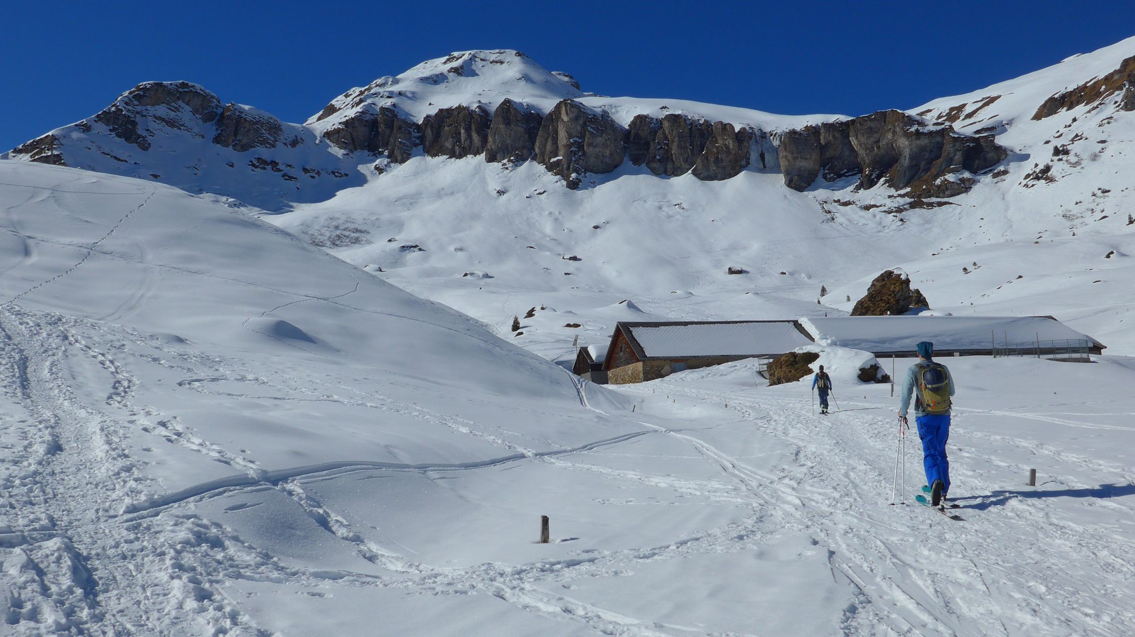 Wir starten etwa 150 Hm unterhalb des Skihauses Schwarzenberg. Es gibt einige Parkmöglichkeiten. Die Strasse ist oben teils schneebedeckt, mit tiefen Spurrillen. Herrlich sonnig ist dann der Aufstieg nach Schwarzenberg und weiter über Mädems Vorsäss nach Mädems Hintersäss. Eine recht alpine Kulisse breitet sich vor uns aus. Auch der Steingässler ist von hier aus ein beliebtes Ziel.
