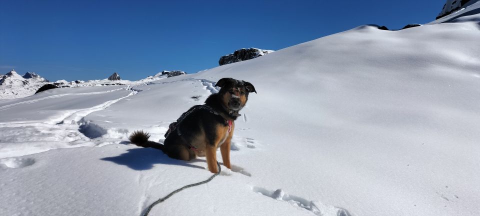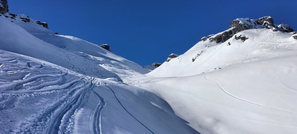 Sehr gute Verhältnisse auf der Route , dank eines kalten Nordost Windes immer noch Pulverschnee.