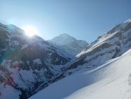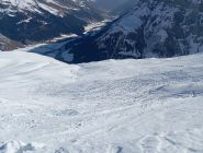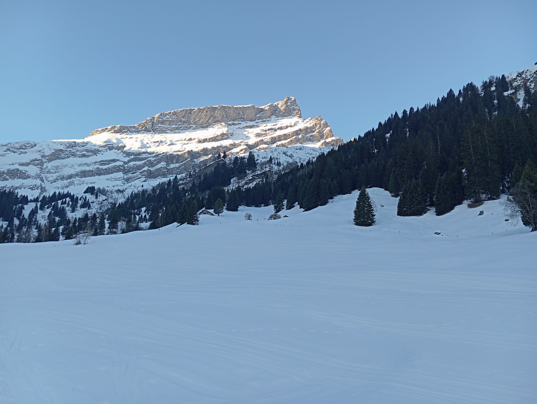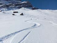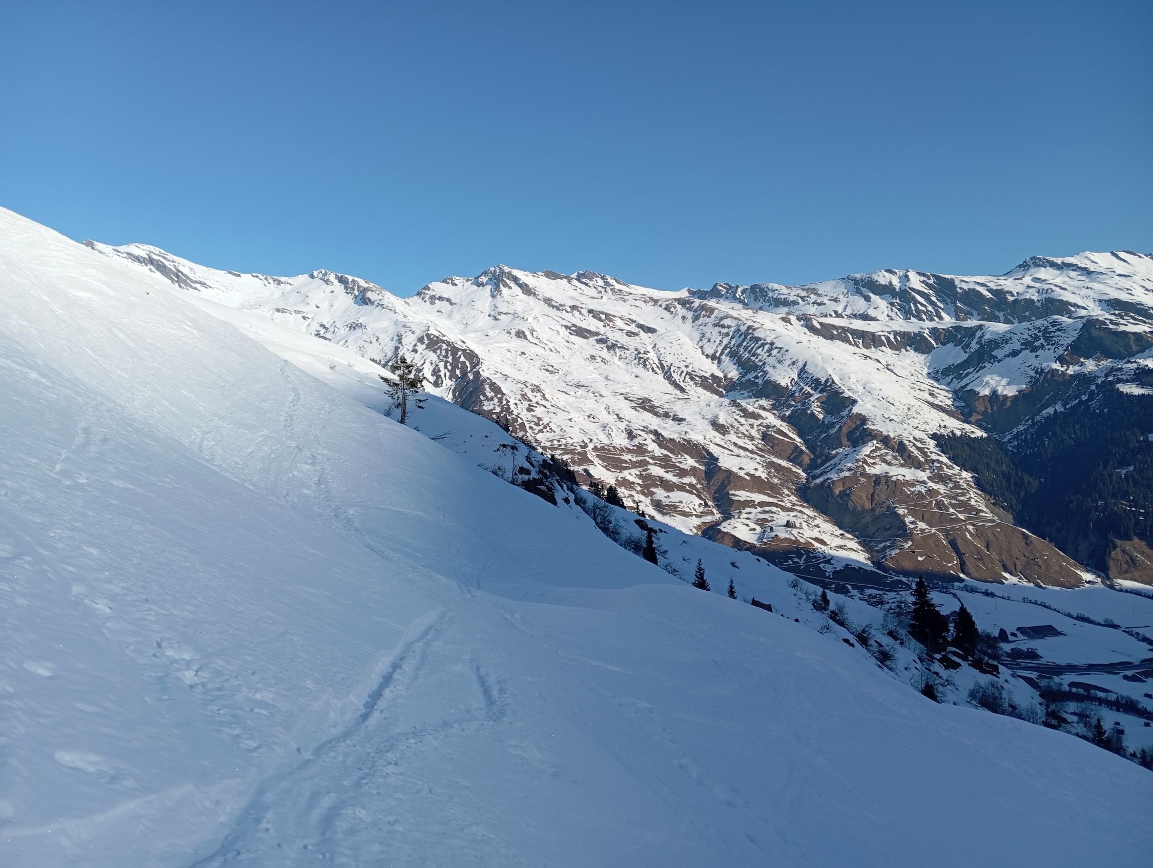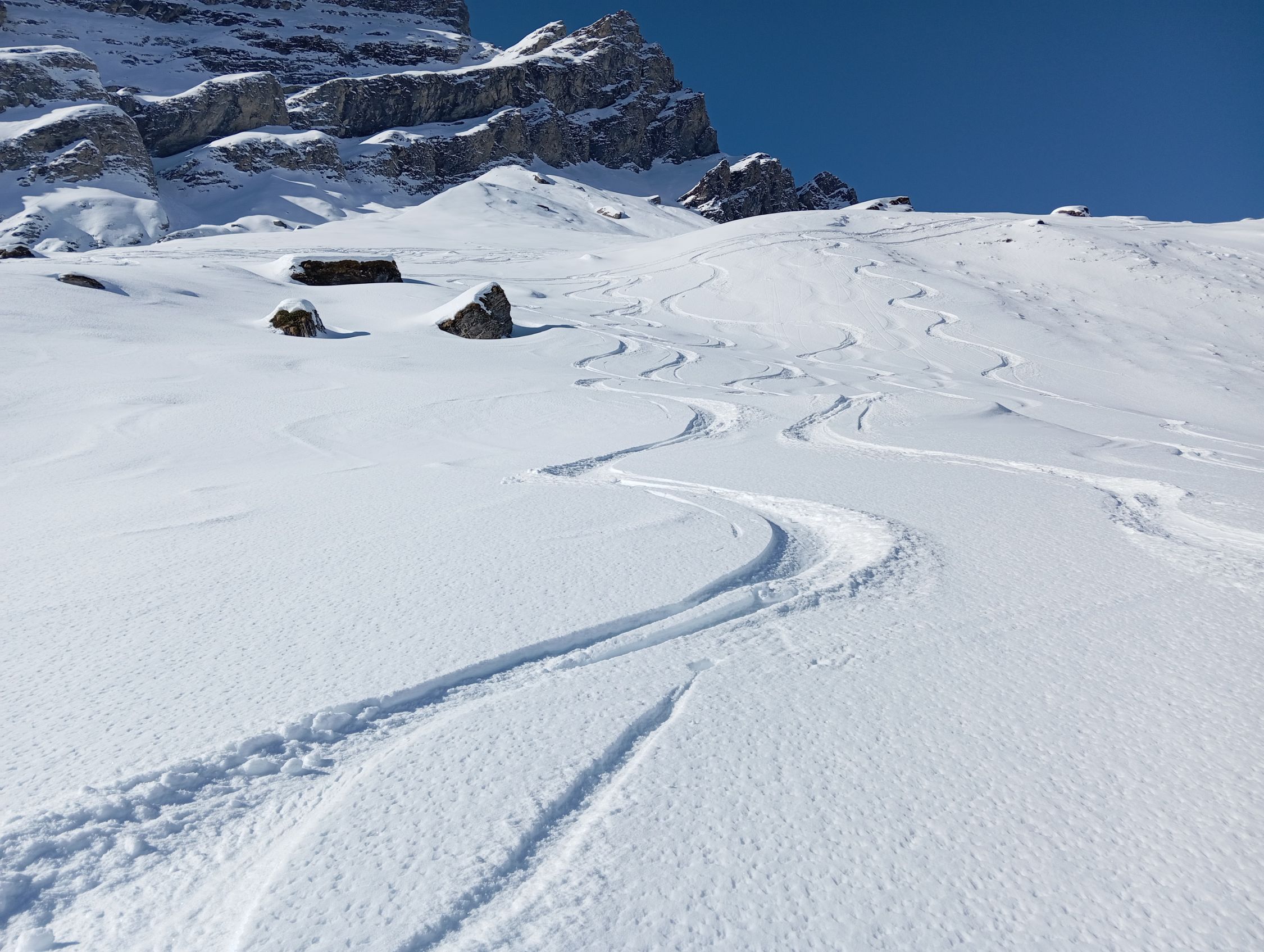 Unten hart und Spur verfahren. Oben gute Spur. Wechselnde Schneeverhältnisse, oben teils schöne Pulverschneepassagen