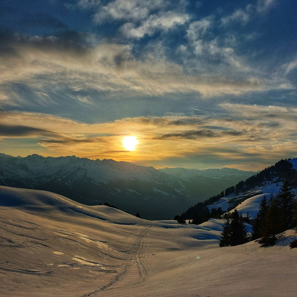 Feierabend- und Sonnenuntergangstour, von Jenins aus über den Alpweg mit dem E-Bike bis ca. 1600m, einige off/ons und ab 1800m durchgehend Schnee. Nordhänge noch pulverig gut, sonst der übliche Mix mit alles.