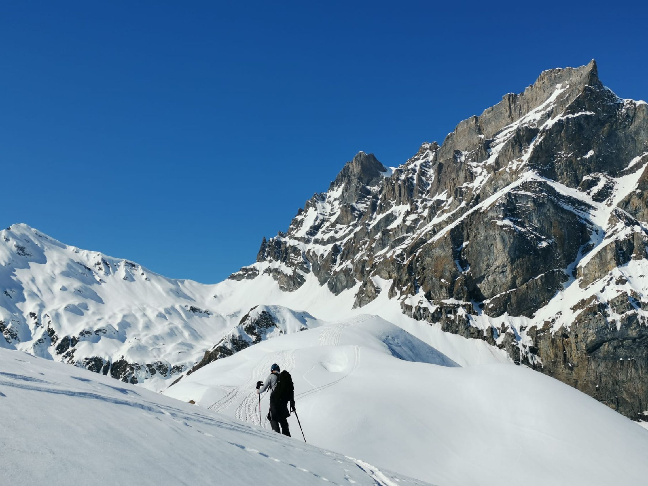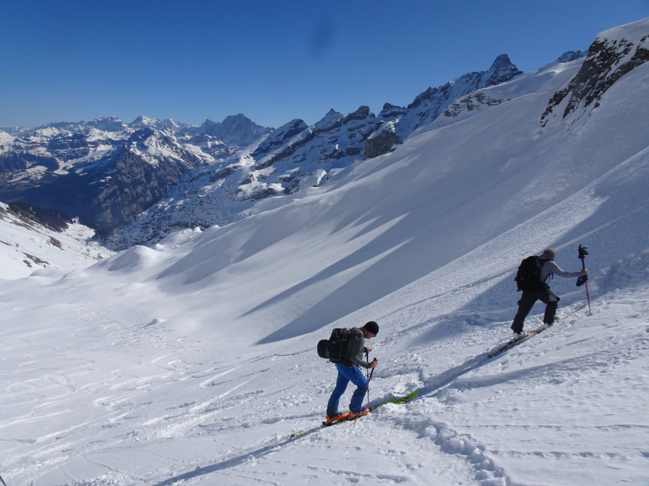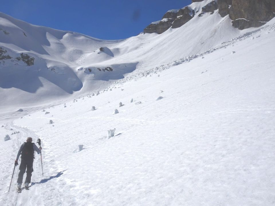 Noch etwas Pulver gefunden und einige unverfahrene Stellen, direkt ab Gipfel pulvrige Piste, etwas oberhalb Surenenpass eingefahren, da noch wenig Spuren,