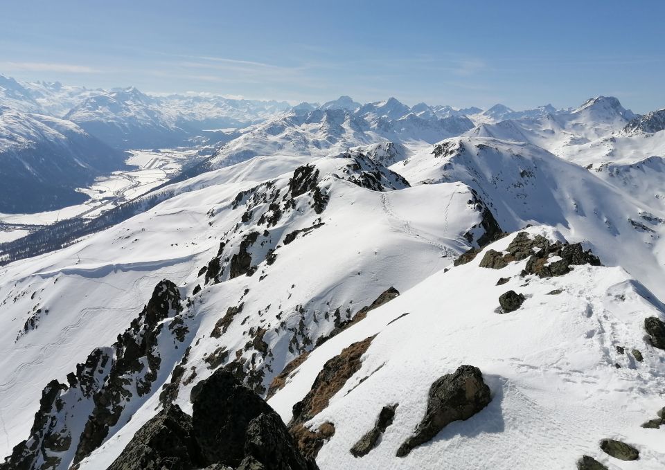 Ganze Tour Harsch, am Vormittag Auffirnung. In der Abfahrt (über Albanas) in den steileren Südexpositionen tragender Firn, in den flacheren oder SO gerichteten Hängen noch wenig verfestigter Deckelschnee, teils sogar gesetzter Pulver.