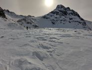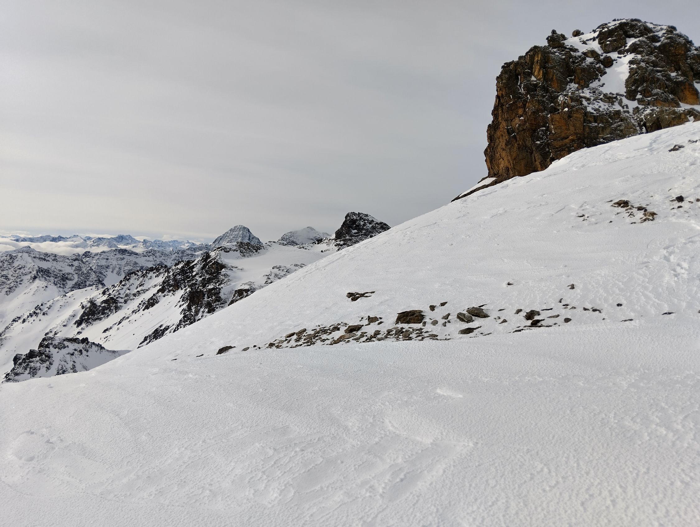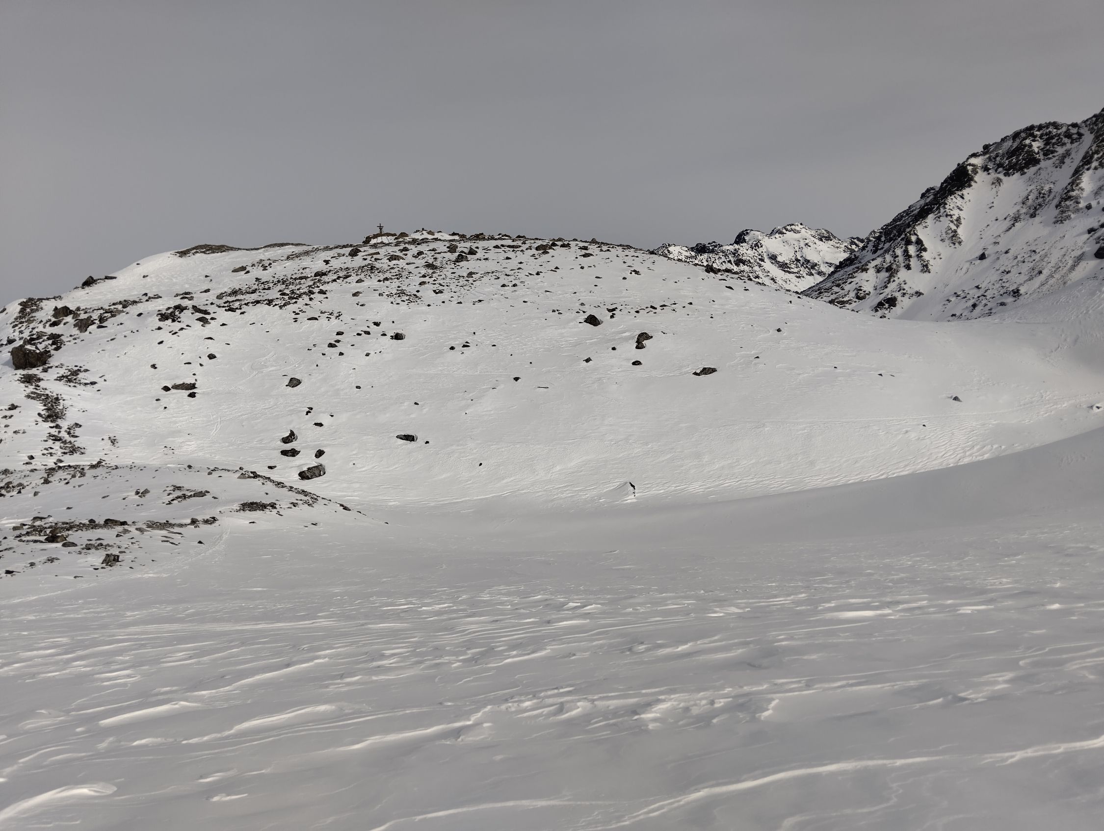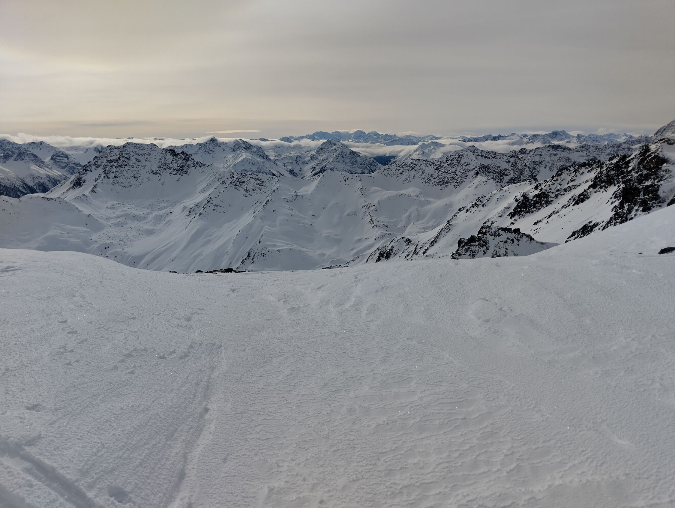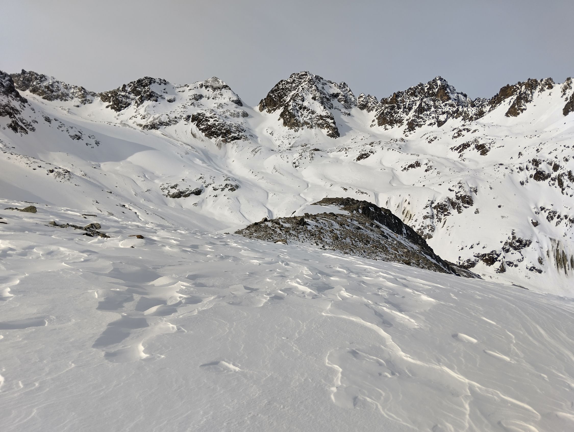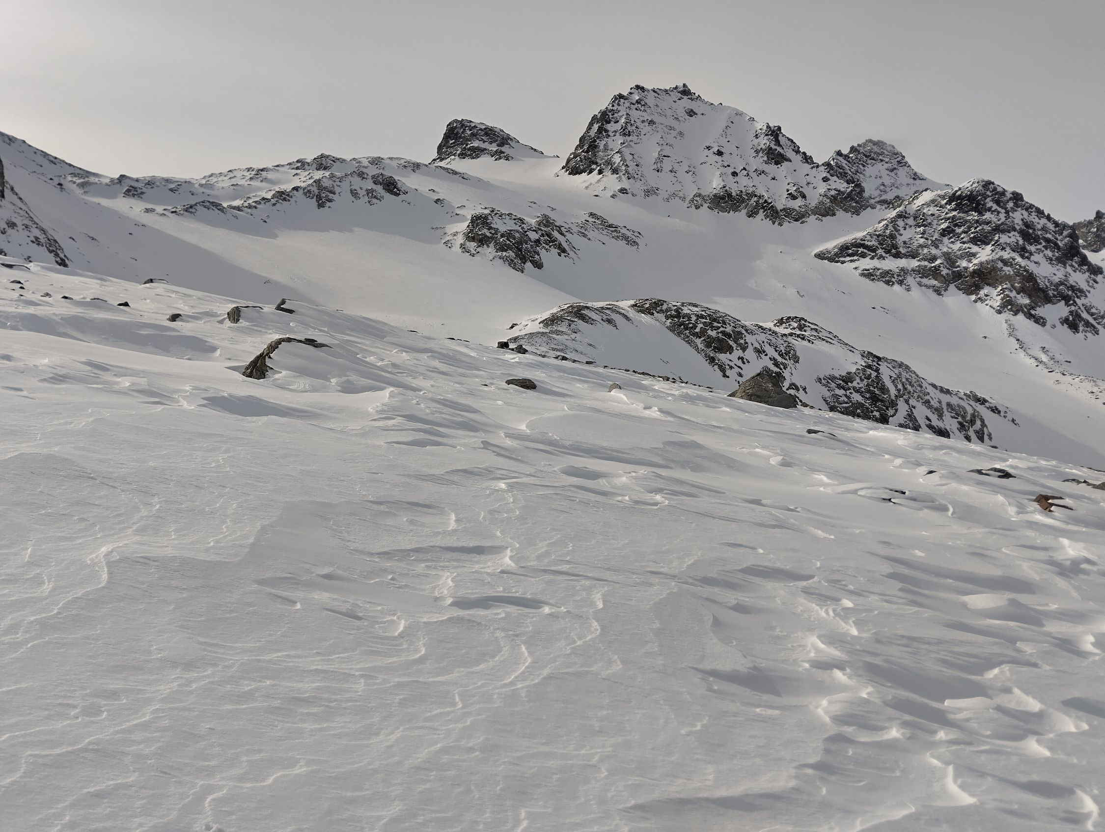 Im obersten Teil des Jamtaferners Pulverschnee. Dann windgepresst oder Harschdeckel