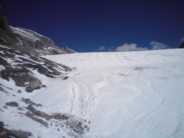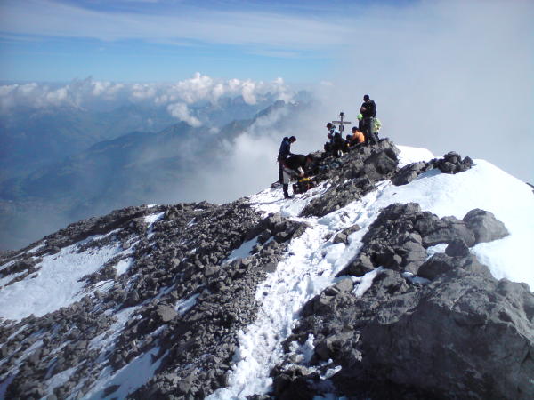 Aufstieg bis zum Glärnischfirn schneefrei (abgesehen von ein paar wenigen 2-3m Passierungen). Glärnischfirn ist mit guten Trittschnee bedeckt. Die Schlüsselstelle beim Abstieg zum Schwandergrat ist schneefrei. Der Grat zum Vrenelisgärtli ist schneebedeckt und gut machbar. Es gab heute einen grossen Ansturm und es gibt gute Wege. Die Steigeisen blieben heute den ganzen Tag im Rucksack wobei es auch Gruppen gab, die die Steigeisen montiert hatten.