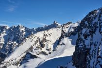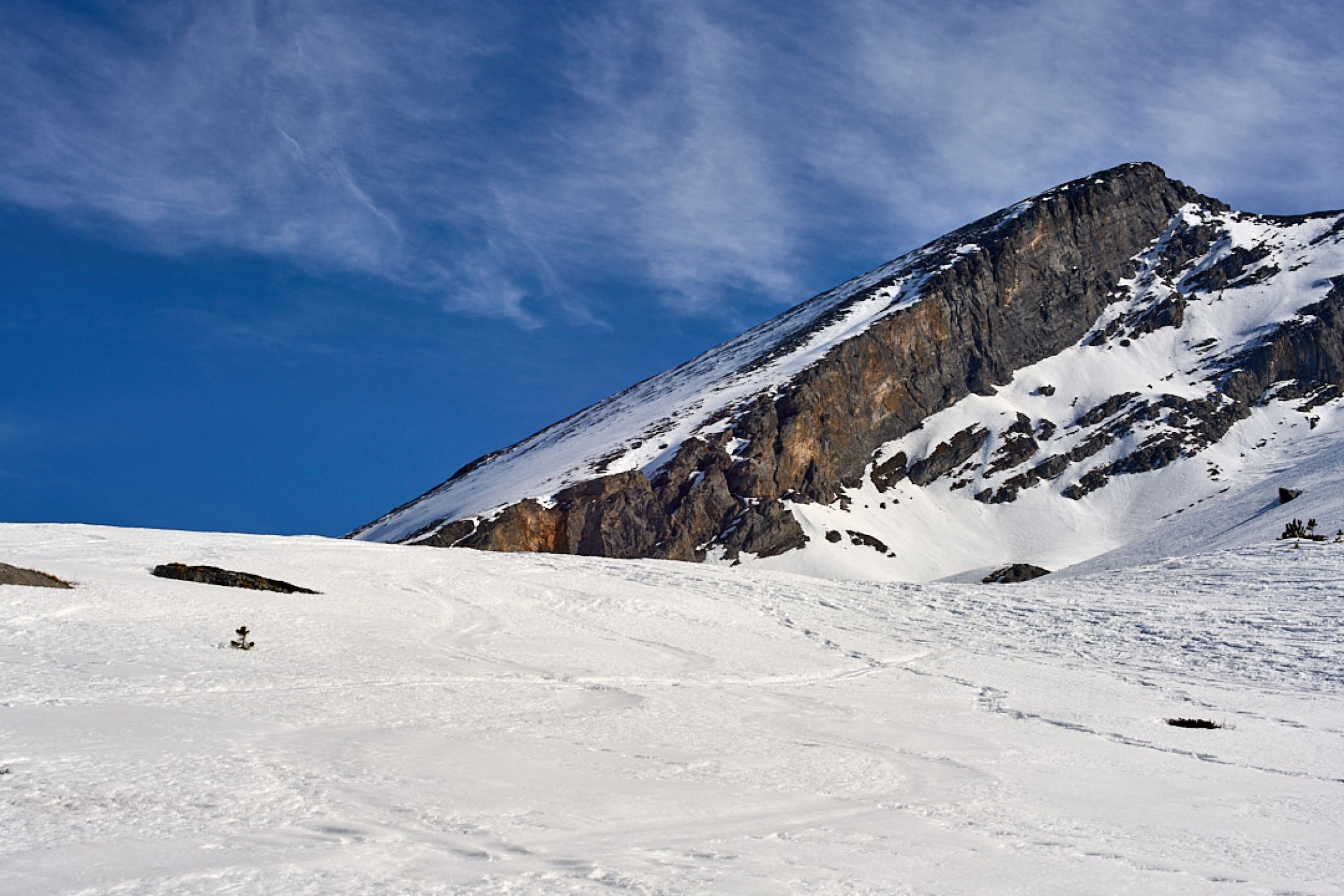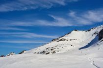 Gipfel schon fast aper. Schidepot auf dem Grat empfehlenswert.