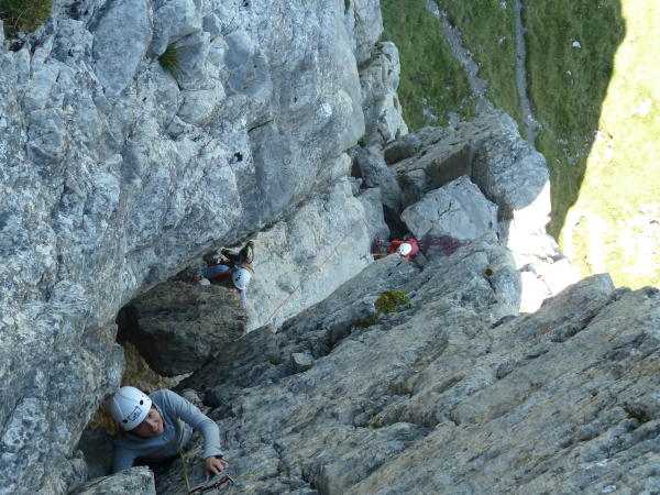 in der letzten seillänge tropft es aus den felsen, und der aufschwung verdient eher die bewertung 5a+, unsere mitkletterer kamen dann mit grossem krafteinsatz hoch, zudem ist der seilzug enorm, besser expressen mit verlängerung einhängen ab diesem aufschwung.