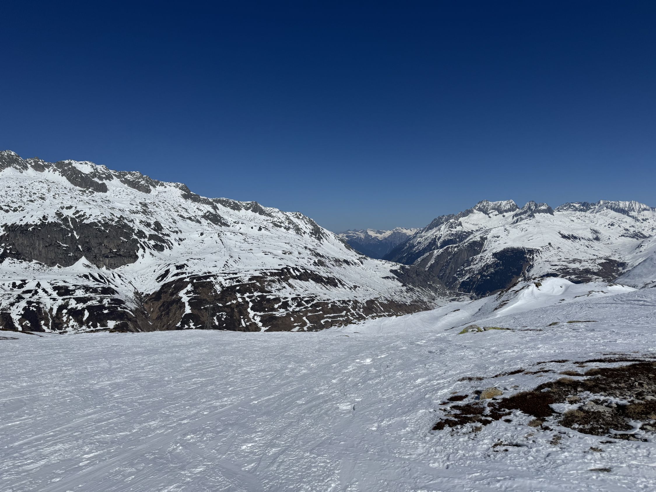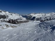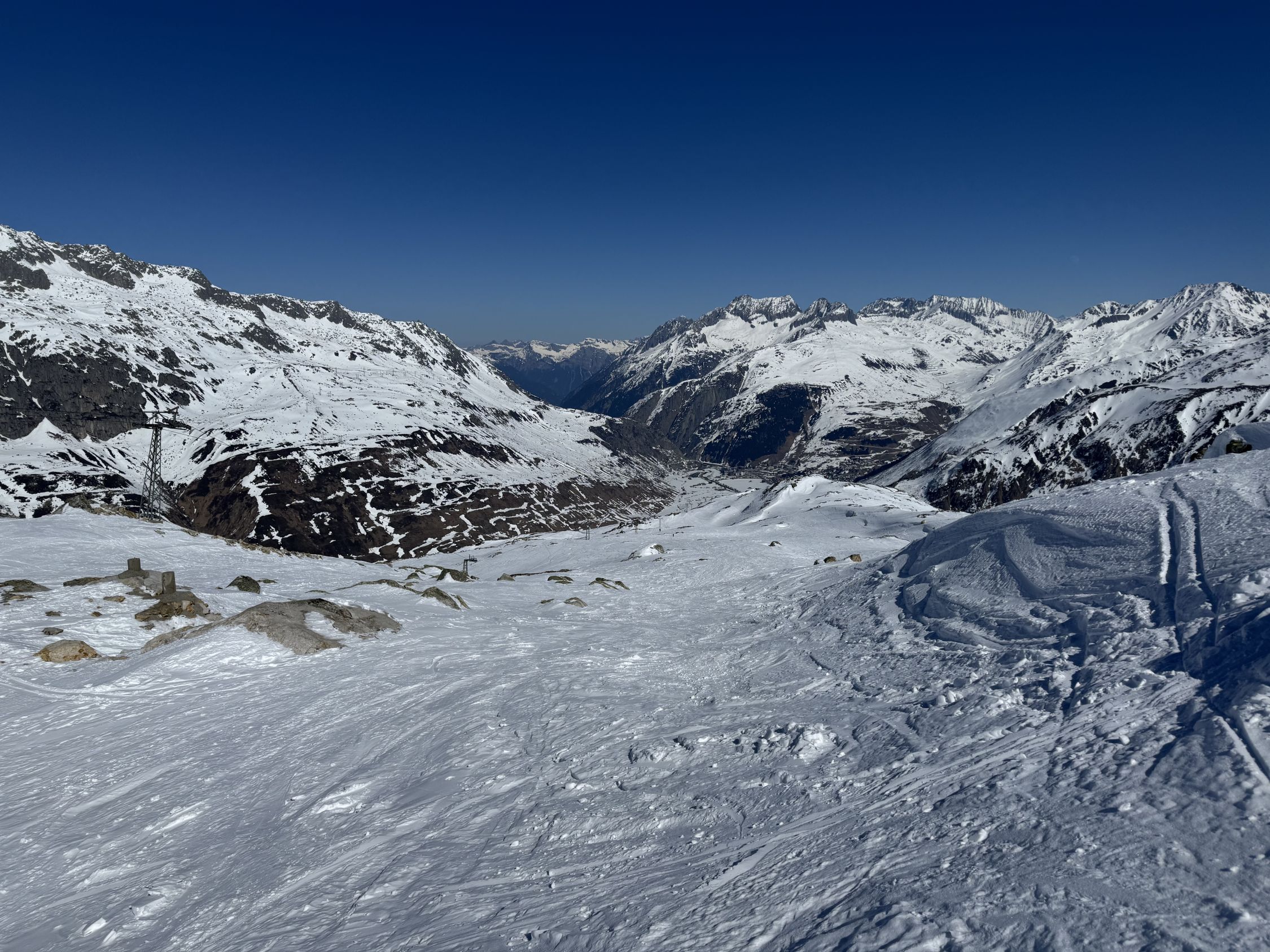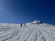 Es war nicht die erwartete Frühlingstour. Trotz Sonnenschein sorgte der Wind für ein Kältegefühl und drei Lagen waren nicht zu wenig. Bei der Abfahrt um 12.30 war die Piste bis ganz nach unten noch hart.