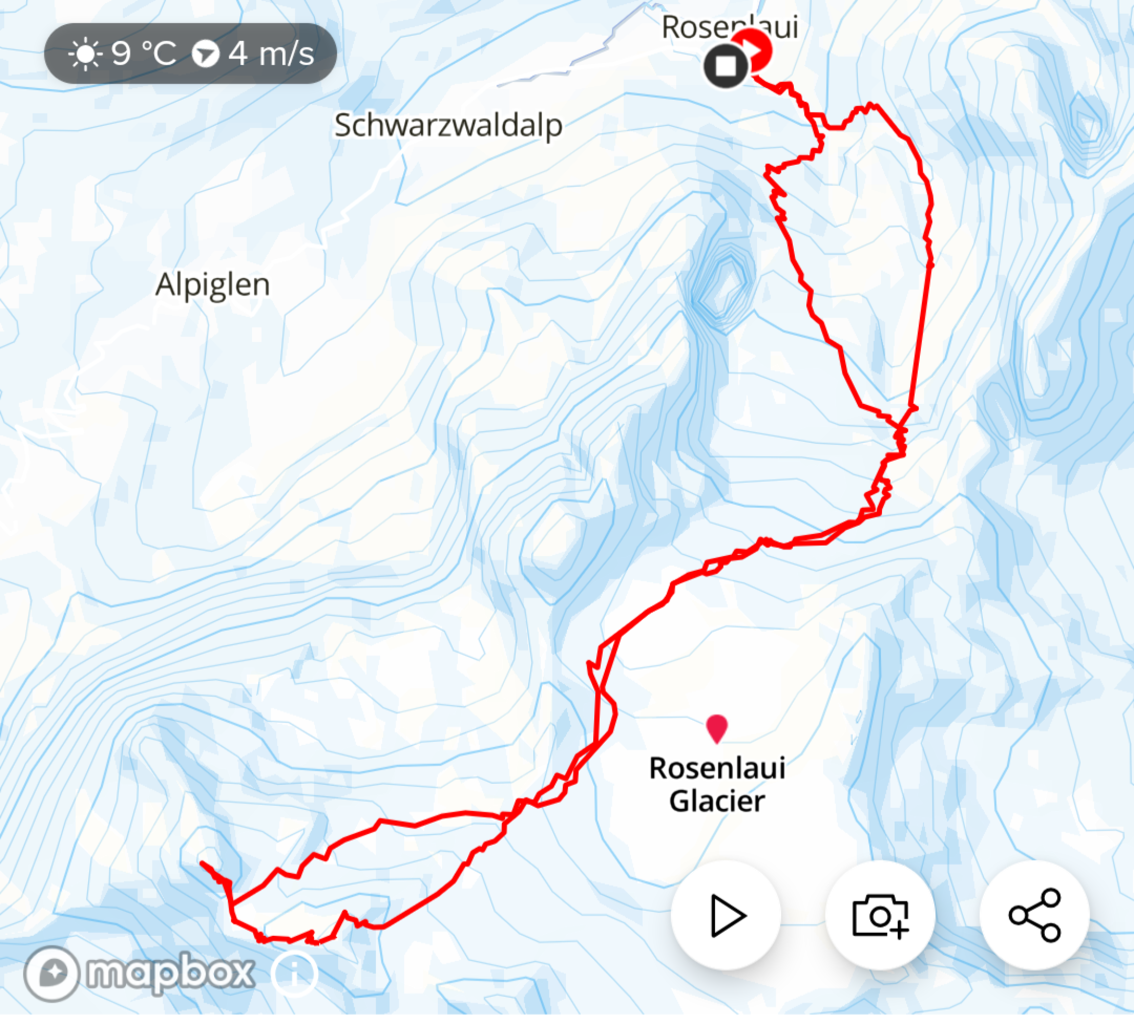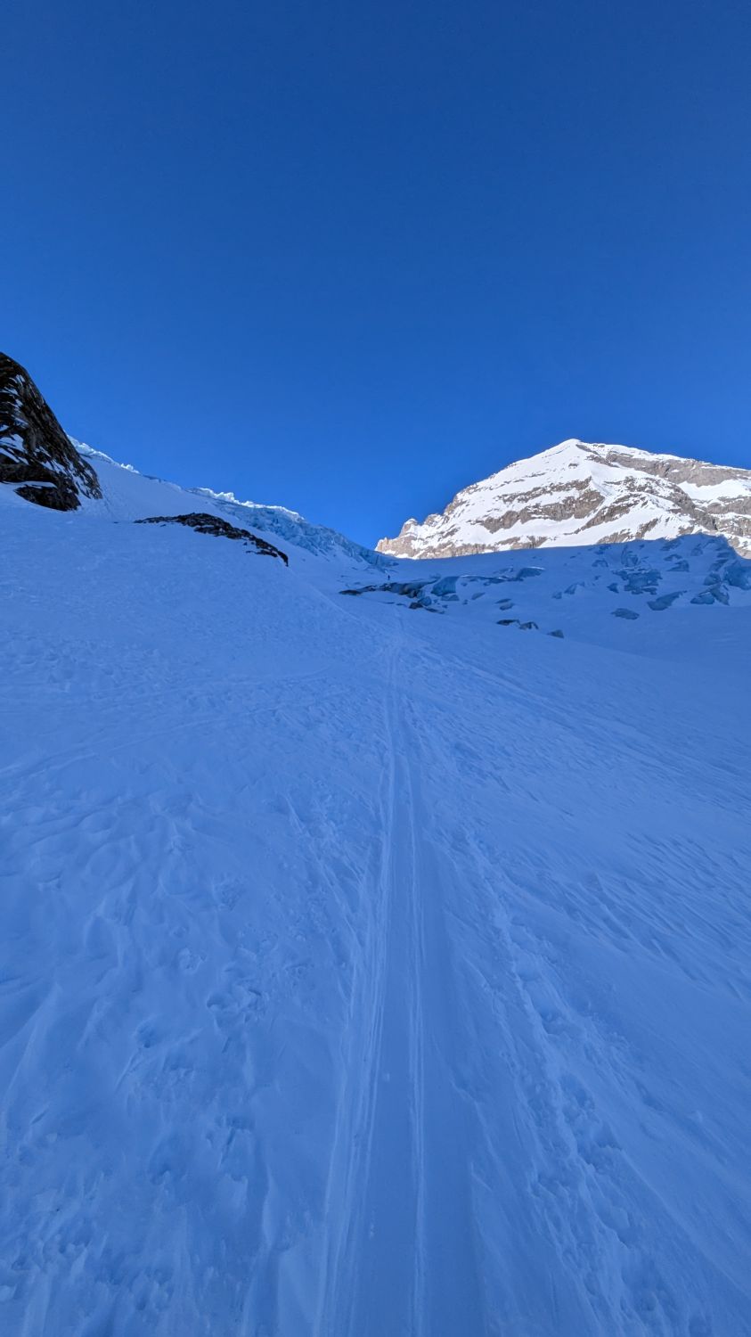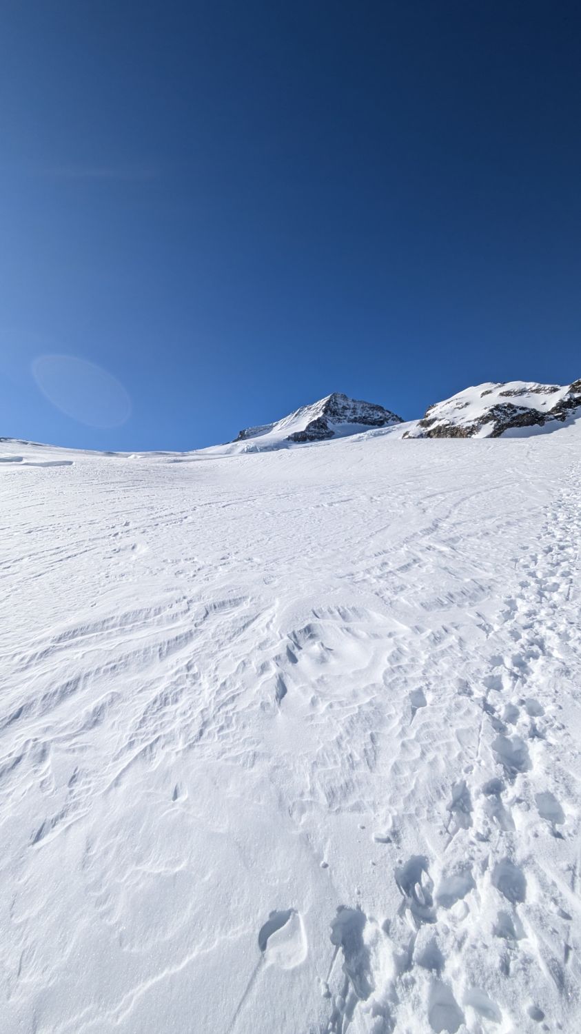 In den oberen Bereichen noch teilweise schöner Pulver, unten raus teilweise hart oder Bruchharsch, Speziell Rosenlauigletscher nach Mittelhorn super