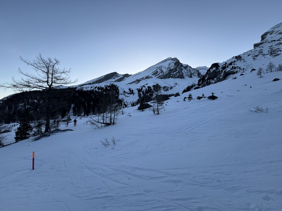 Wir sind aus Zeitgründen nur bis unterhalb des Skidepots auf ca. 3'100m aufgestiegen. In der Abfahrt guten Pulver nördlich des Felsriegels gefunden.