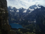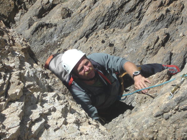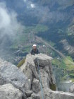 Nach den Platten (4. Länge) nur ca. 30m rauf und dann nach links queren- nicht über den Schutt ins Couli. Ausstiegsmöglichkeit beim 'Tschäri'- ca. Hälfte. Guter Weg für Querung und Abstieg.