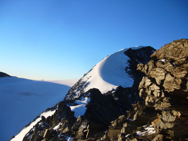 Weg aufs G. Bigerhorn einfach. Der erste Gratteil beinhaltet Kletterstellen (II) die Umsicht erforderten. Teilweise Schnee. Flanke zum Balfrin-Vorgipfel recht steil und aper, genauso zum Hauptgipfel. Abstieg zum Riedpass einfach. Aufstieg zum Ulrichshorn unten aper und zum Windjoch hin ebenfalls.