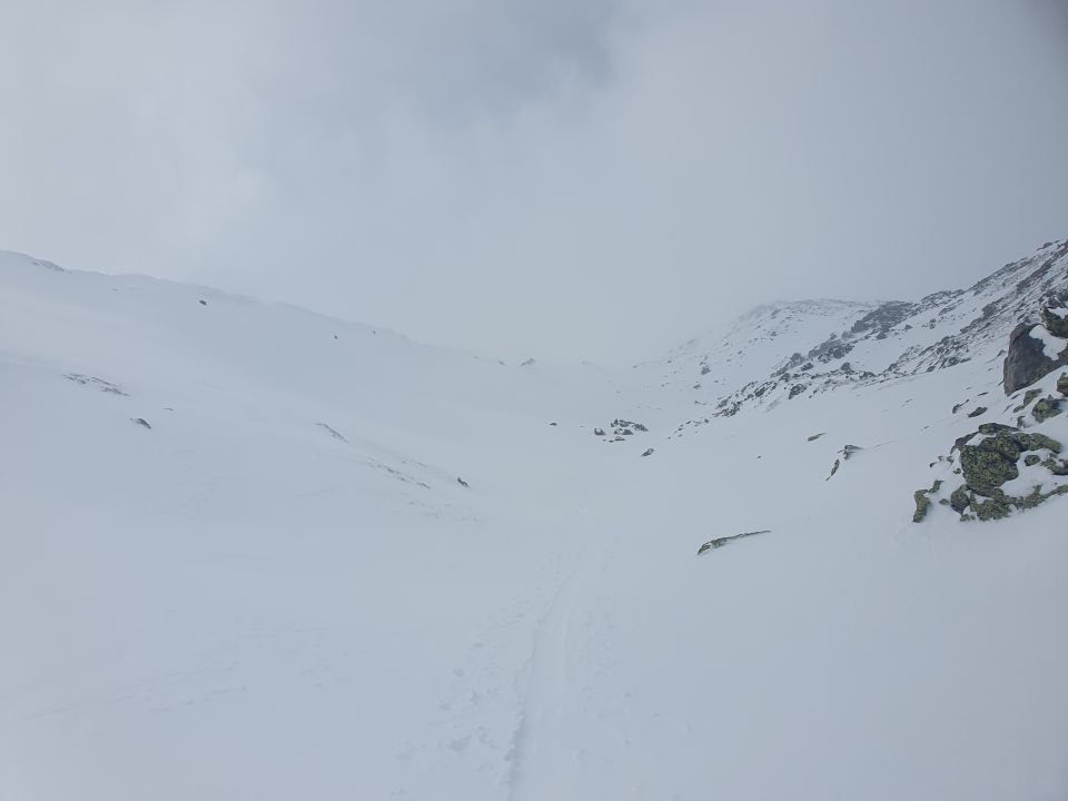Trotz Nebel und dank der Spur eine tolle Tour mit gutem Pulverschnee.