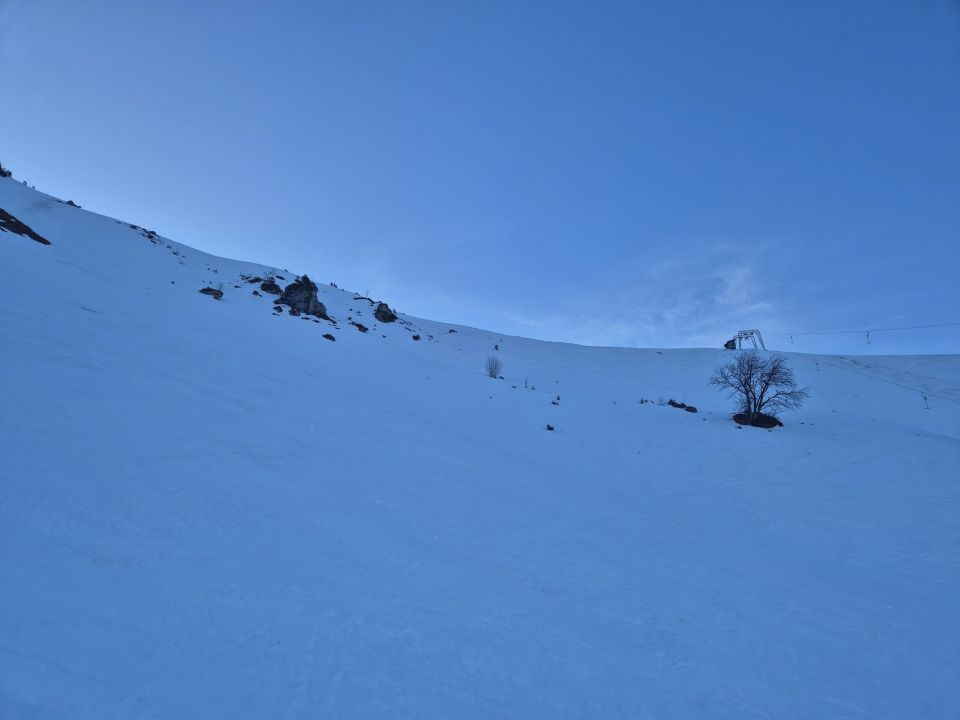 Aufstieg direkt beim Parkplatz hoch neben dem Wald, hier sogar noch Pulver. Ab Bergstation sehr hart, meist pistenähnlich. Ab Charen windgepresst, wenige Pulvermulden. Alles in allem ganz OK. Mit diesen Aufstieg immernoch ohne Tragestellen möglich.