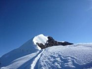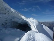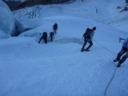 Im Aufschwung am Vorgipfel ist das Blankeis auf ca. 10m auf sehr guter Spur zu überwinden.