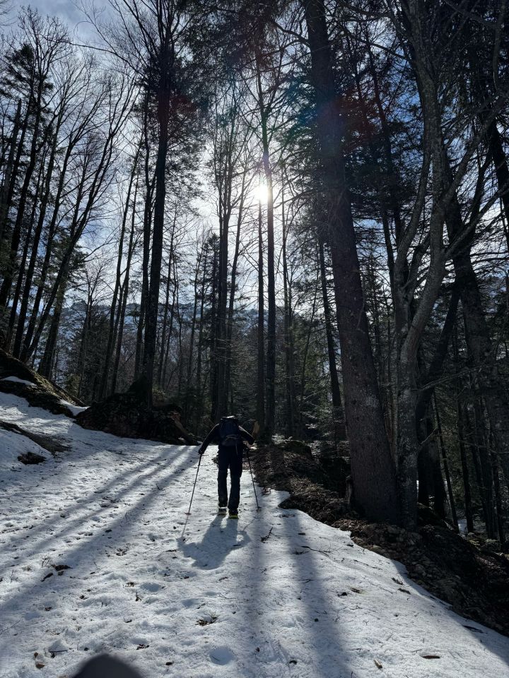 Mit dem Auto kamen wir bis auf 1000m. Von da ohne Schneeschuhe, da die Strasse immer wieder schneefreie Abschnitte hatte, zu Fuss bis Mittlerwängi. Dort montierten wir die Schneeschuhe. Nachdem wir erst um 11 Uhr losgingen, war der Schnee entsprechend weich. Die folgenden aperen Abschnitte bis zum Waldrand (ca. 1250m) konnten wir über- bzw. umgehen. Auf den Rucksack mussten die Schneeschuhe auf einem Abschnitt nach der Under Rossalp.