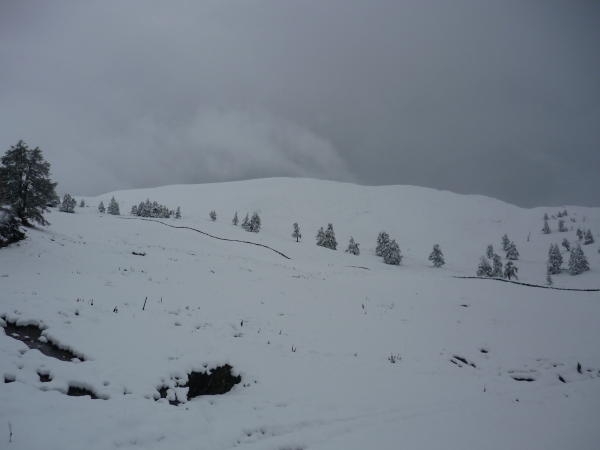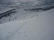 Super Schnee, jedoch etwas klebrig im Aufstieg.