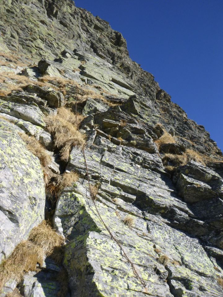 Der Routenverlauf des langen Bergsteigs durch die Südflanke ist etwas abenteuerlich und verlangt Aufmerksamkeit bei der Wegwahl. Die verbleichenden blau-weißen Markierungen sind nicht mehr überall erkennbar.