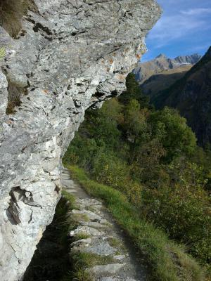Der Abstieg ist auf einem netten Wanderweg Richung Süden. Wer nicht die ganzen 1600 hm zurücklaufen möchte, findet möglicherweise eine Mitfahrgelegenheit. Die Hinfahrt zum Hüttenweg lässt sich mit PW verkürzen - für 5 Franken gibt es eine Bewilligung im Dorf Ausserberg.