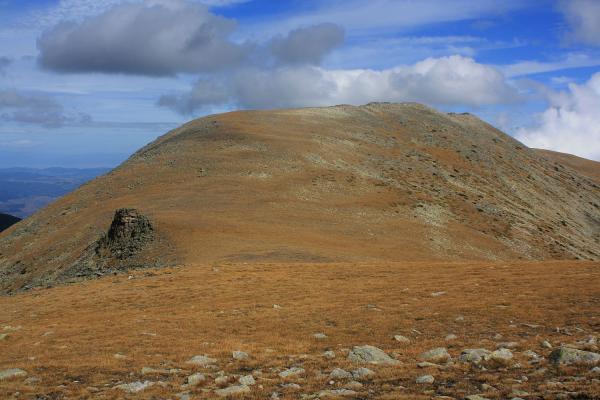 ... Einen sternenklaren Himmel leuchtete als ich um sechs Uhr morgens mein Hotelzimmer verlies, der Wettergott hat's wohl gut gemeint an meinem wichtigsten Tag in Bulgarien. Auf einer Strasse erreichte ich bald die Abzweigung Бистрица (Bistrica) wo der eigentliche Aufstieg zu den Hütten Хижа Мусала (Hiža Musala) beginnt. Stetig steil wanderte ich auf den breiten, gerölligen Forstweg talaufwärts während es langsam begann hell zu werden. Nach knapp zwei Stunden erreichte ich die Brücke Велчево мостче (Velčevo mostče) auf 1950m Höhe. Hier rastete ich kurz doch wanderte bald weiter da es im engen Tal doch ziemlich kühl war. Die Schotterstrasse führte weitere 200 Höhenmeter bergauf bis zu einer Skistation wo endlich ein echter Wanderweg zur Hiža Musala ausgeschildert war. Der Pfad schlängelte sich durch dichte Legeföhren zu einer Weide. Hier überquerte ich wieder den Bach und stand bald bei der schön an einem Bergsee gelegenen Hütten auf 2389m. In der Sonne war jetzt endlich eine gemütliche Rast möglich, denn der Weg zum Musala wird noch lange sein! Frisch gestärkt ging ich mein erstes Gipfelziel an, dafür folgte ich zuerst ostwärts einem grün markierten Bergweg hinauf zu einem Bergrücken den ich auf 2500m erreichte. Hier geginnt die interessante, oft weglose Grattour zum Musala. Zuerst wanderte ich den breiten Grasrücken hinauf bis zum Vorgipfel des breiten Grasberges Дено (Deno). Durch ein Blockfeld erreichte ich alsbald den mit 2790m höchsten Punkt mit einem riesigen Steinhaufen. Gegenüber wanderte ich über Grashänge hinab in einen breiten Sattel mit der auffälligen Felsformation Сфинкса (Sfinksa). Vom Sattel querte ich zu einem kurzen Gratstück mit einem kleinen Steinmann und Wegspuren, danach ging es meist weglos auf den Nordgipfel des Ireček von wo ich eine prächtige Aussicht auf meine bisher zurückgelegte Strecke hatte. Der südliche Hauptgipfel war von dort über Geröllblöcke schnell erreicht. Dort zeigte sich der Musala mit seiner Nordostflanke besonders eindrücklich, doch zuerst lag noch der Malka Musala auf meinem Gratweg dazwischen. Etwas östlich vom Grat stieg ich auf Wegspuren in den Sattel zwischen den Gipfel Ireček und Malka Musala hinab. Nun könnte man den Wegspuren zum Malka Musala etwas östlich vom Grat aufsteigen, ich zog es vor in lechter Kletterei über den Granitfels direkt dem Grat zu folgen was riesigen Spass machte und ich so bald auf meinem dritten Gipfel der Musalarunde stand. Hier machte ich nochmals eine Rast, doch bald zog es mich weiter. Zuerst ging es einfach den Wegspuren die Flanke hinan, danach am zackig-felsigen Grat entlang in eine tiefe Scharte zwischen den beiden Musalagipfel in der bizarre Felstürme stehen, die Granittürme heissen Трионите (Trionite). Für den Aufstieg folgte ich wieder meistens dem felsigen Grat, einige Stellen waren sogar mit einem Drahtseil gesichert welches aber bei den trockenen Verhältnissen nicht benötigt wird. Sowiso machte es hier mehr Spass dem Grat in netter Kletterei direkt zu folgen - nur einmal stand ich auf einem Turm und musste einige Meter wieder zurück steigen. Zum geräumigen Gipfel hin wurde das Gelände immer einfacher zu begehen und so erreichte ich den höchsten Berg der Balkanhalbinsel nach 7½ Stunden ab Borovec. Leider waren inzwischen einige Quellwolken aufgezogen und raubten mir so die Fernsicht, dennoch war es ein super Erlebnis auf diesem schönen Berg zu stehen. Da das Wetter nicht so klar war und es noch frühen Nachmittag war entschied ich mich am gleichen Tag abzusteigen obwohl ich den Schlafsack für ein Gipfelbiwak dabei hatte. So wanderte ich in etwa vier Stunden über den einfachen Normalweg zurück nach Borovec, zuletzt wollte der Schotterweg im tiefen Tannenwald einfach nicht enden und ich staunte dass mir die Strecke im Aufstieg nicht besonders lange vorkam...