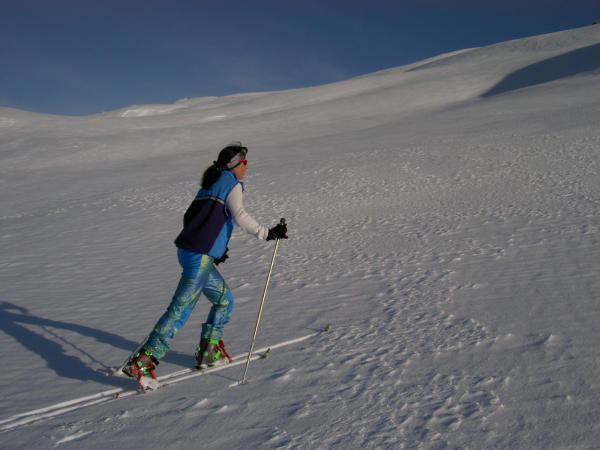 10 - 20cm Pulver auf härterer Unterlage. Wunderbare Verhältnisse für Auf- und Abstieg. Waren ganz alleine...