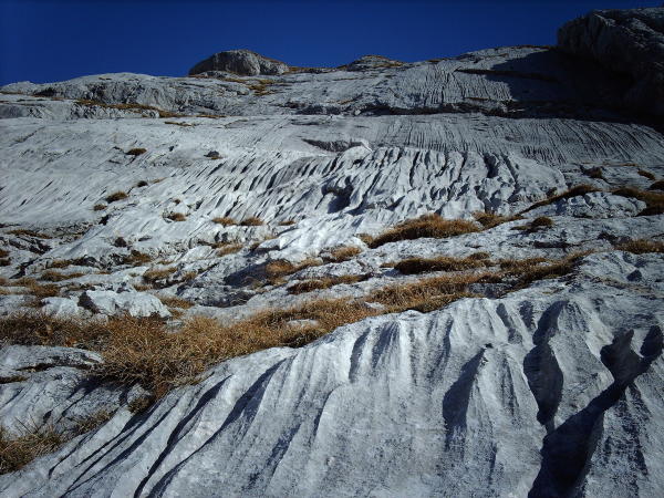 in der Früh alles gefroren, entsprechend kalt der Fels, Sonne erreicht etwas später die Platten