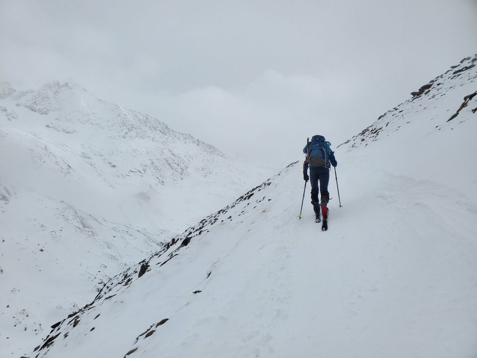 die angekündigte Lawinenstufe 2er war doch gefühlt ein 3er, daher defensiv auf der relativ flachen Route zum Similaun aufgestiegen; zunächst noch Nebel und Schneefall, daher beim Spuren noch wenig Sicht; ab der Similaunhütte aber vorhandene gute Spur benutzt; Gletscher ohne Probleme ohne Seil begehbar; auch am Grat mit Steigeisen problemlos, eine kurze Stelle im Fels ein bischen heikler; Abfahrt im pulver super, allerdings je tiefer man kommt, hat sich der immer schwerer werdende Schnee bemerkbar gemacht, denn es war unterhalb 3000m doch ungewöhnlich warm; im Gebiet gab es auch zwei Lawinenverschüttungen, jedoch glücklicherweise gut ausgegangen;