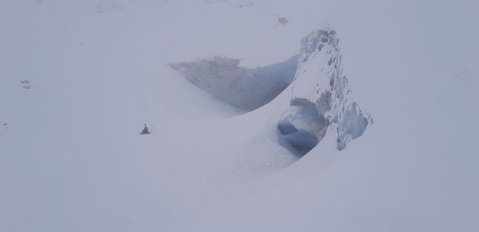 Zustieg im Nebel zur Cab.du Mountet. Der Nebel öffnete sich aber und gewährte am So kurz Sonne im Hüttenzustieg. Wir waren die einzigen Gäste auf der Hütte So/Mo. Am Montag bester Sonnenschein und Traumverhältnisse mit 10 - 20 Pulverschnee. Ganz alleine im Gebiet unterwegs.