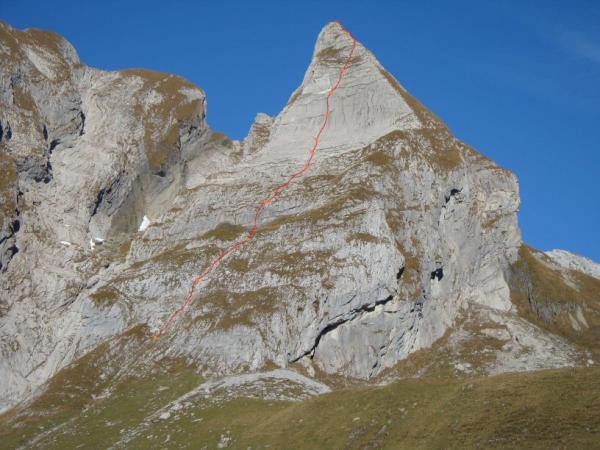 Gute Verhältnisse, alles trocken über dem Nebelmeer. Zustieg und Aufstieg über die Route wie oben bereits beschrieben. Als Ergänzung dazu: Auf den ersten 6SL meistens nur 1 Haken als Zwischensicherung vorhanden. Danach mit jeweils 5 Haken in den schwierigen 3SL knapp OK. Die Route weist viele brüchige Passagen auf. In den schwierigen 3SL (5b-6a) ist sie aber OK. Der Austieg zum Grat führt ziemlich äzend über Steilgras und Bröselfels zum Stand hinauf. Nette Aussicht auf einem ziemlich einsamen Gipfel. Abstieg mit Abseilen geht erstaunlich gut über die Route. Der Gipfel sieht wirlich toll aus, von weitem... So für Alpin orientierte Kletterer, oder Bröselfels-Liebhaber knapp zu empfehlen.