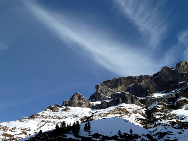 Ab 1800 MüM Schneeschuhe montiert. Es hat auf 2000 MüM ca. 30 Zentimeter Schnee, ab 2400 rund 40 Zentimeter (in Mulden mehr). Der Schnee ist aber bis auf den Boden weich, entsprechend zeitraubend war die Spurarbeit. Ich wollte eigentlich auf die Bütlasse, brauchte aber zu viel Zeit resp. war zu spät dran.