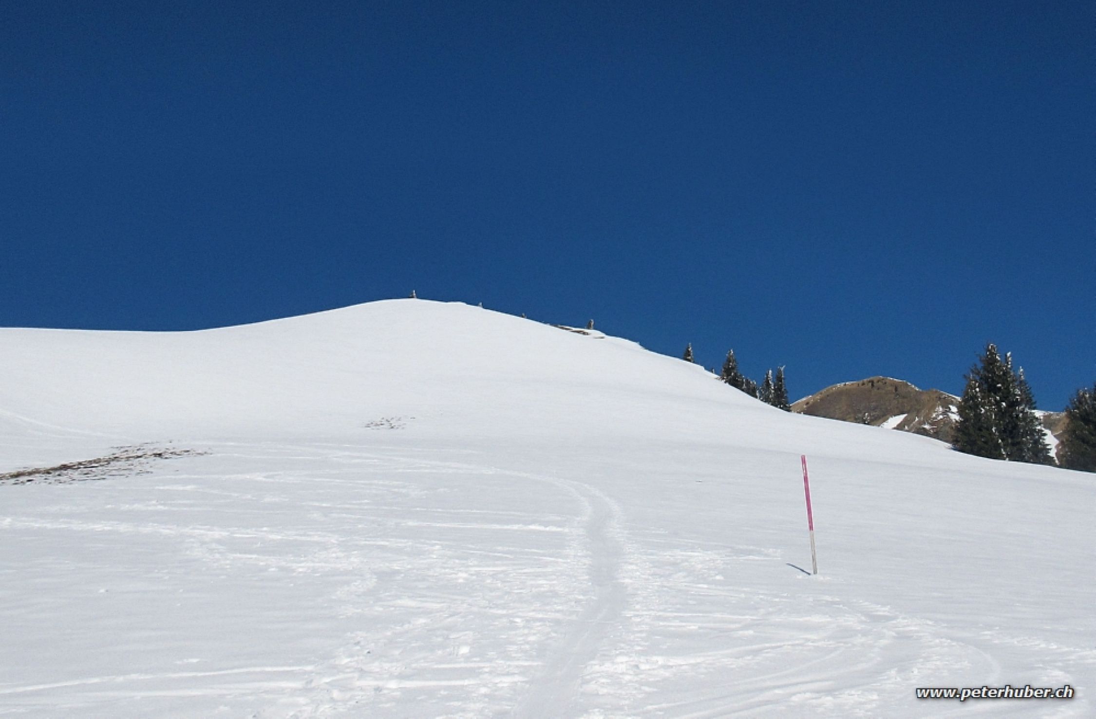 Strahlend schönes Wetter. Unten zuerst etwas Wind. Erstaunlicherweise oben fast windstill. Es hat genug Schnee auf der ganzen Strecke.